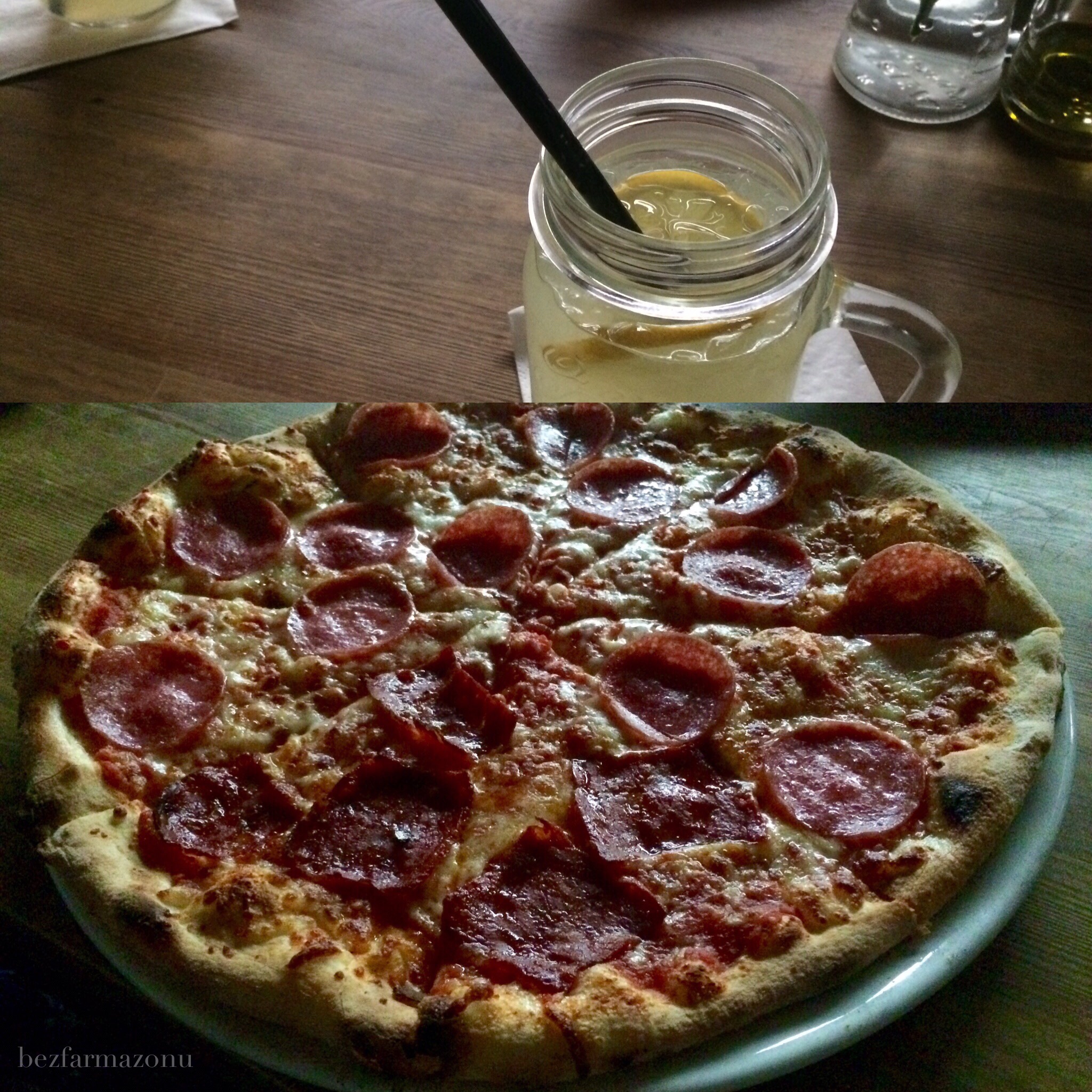 Na naszą prośbę pizza zrobiona została w 1/4 pikantna, a pozostała część była łagodna. Czas oczekiwania na zamówienie wyniósł około 20 minut. Pizza smaczna, ale bez większych zachwytów. Ciasto cienkie, spokojnie można było je jeść bez użycia sztućców, nie było grubości kartki papieru, a ciężar dodatków jej nie załamywał, twardy spód. Salami tłuste, aromatyczne, ale nie wiem czy było prawdziwe włoskie (mam małe obawy, że to nie-pikantne było takim salami delikatesowym).