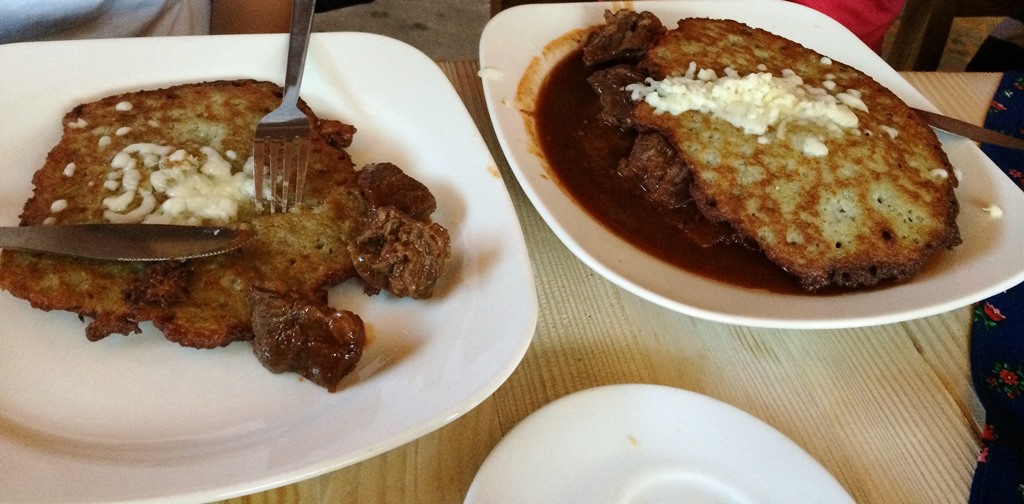 Dziewczyny upatrzyły sobie trzy ogromne placki z gulaszem i ogromną ilością sosu – podzieliły się na pól, a i tak do końca ich nie zjadły.