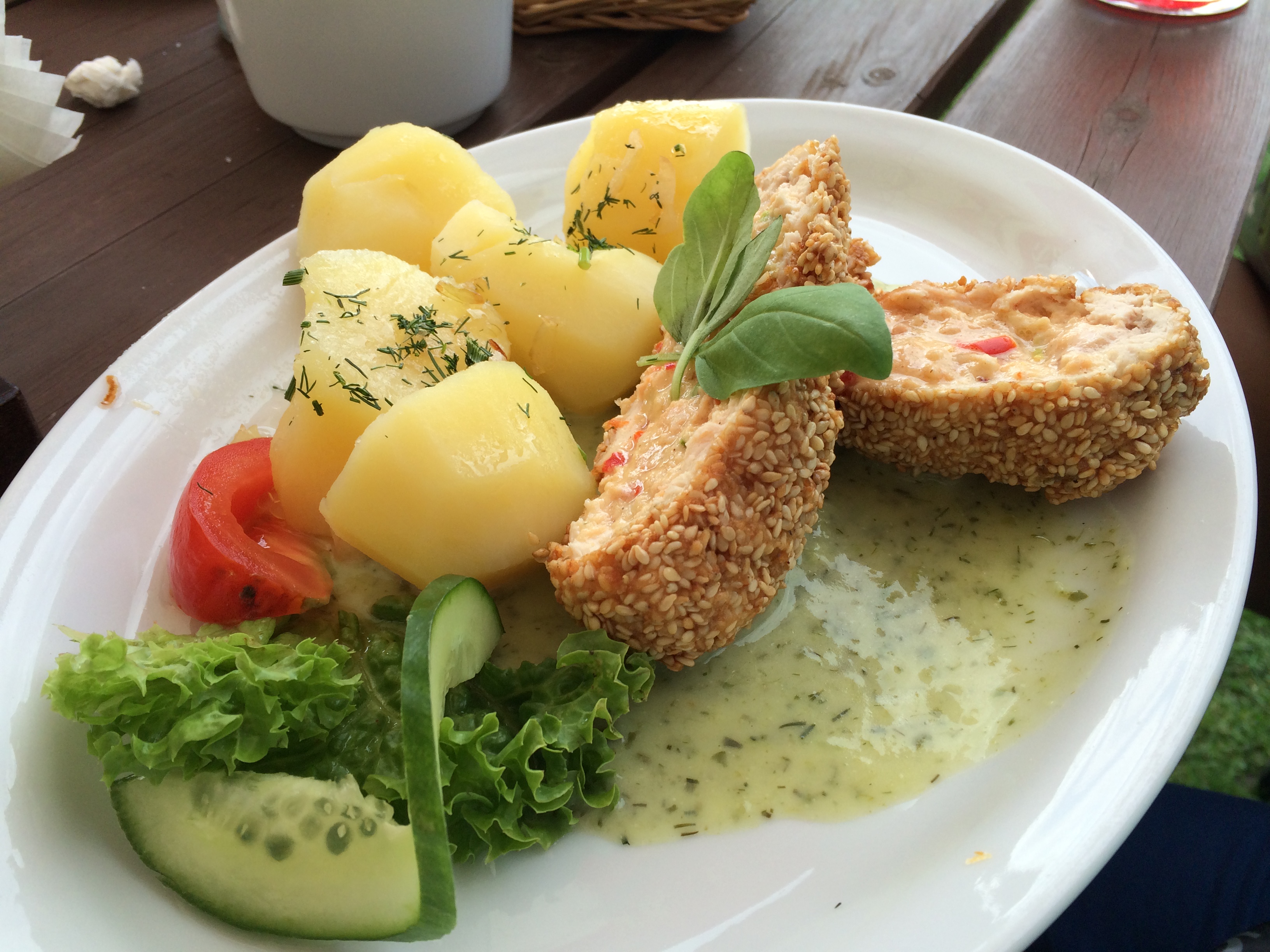 Innym testowanym daniem był bardzo chrupiący filet z kurczaka w sezamowej panierce.