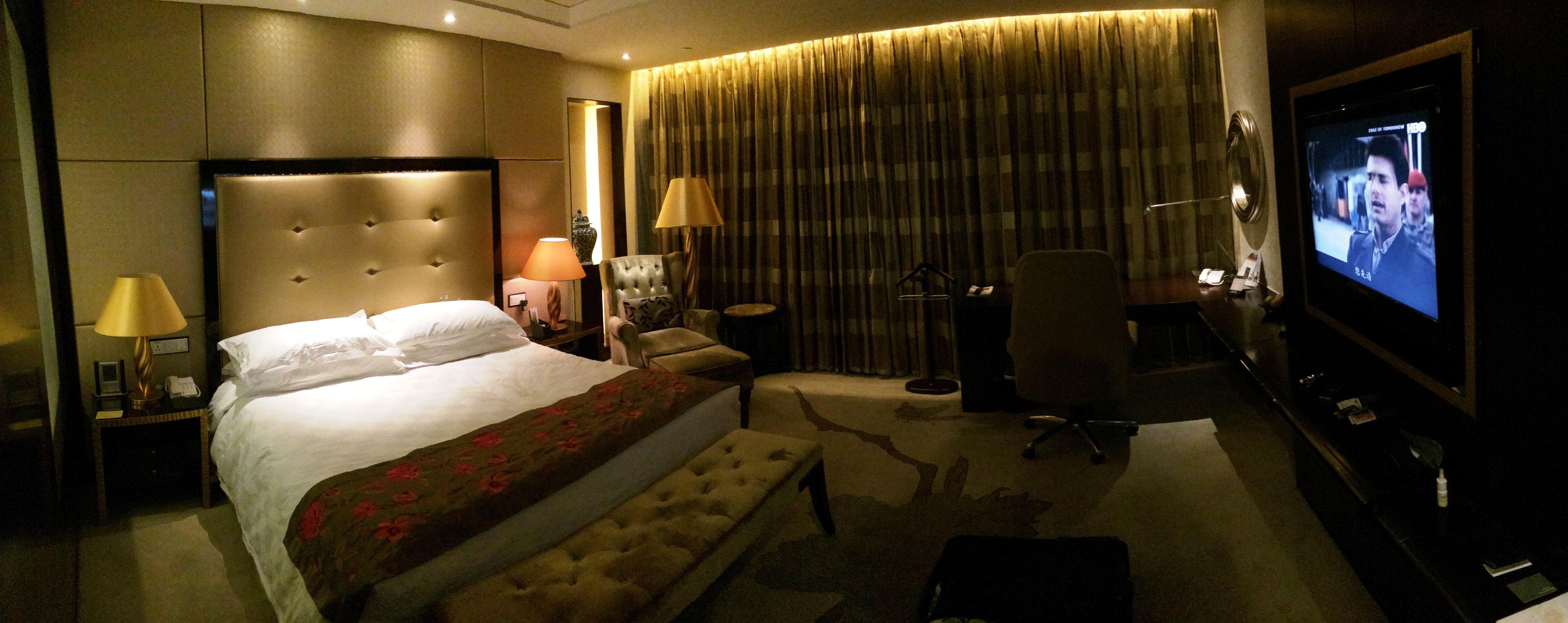 Łóżko king size baaardzo wygodne z milionem poduszek, dodatkowo fotel z podnóżkiem i biurko. Telewizor płaski ale tylko 5 programów które da się oglądać, reszta 50 po chińsku. HBO i Cinemax z albo bardzo starymi filmami albo z jakimiś nieznanymi. Do tego Dicovery i CNN i sportowy.