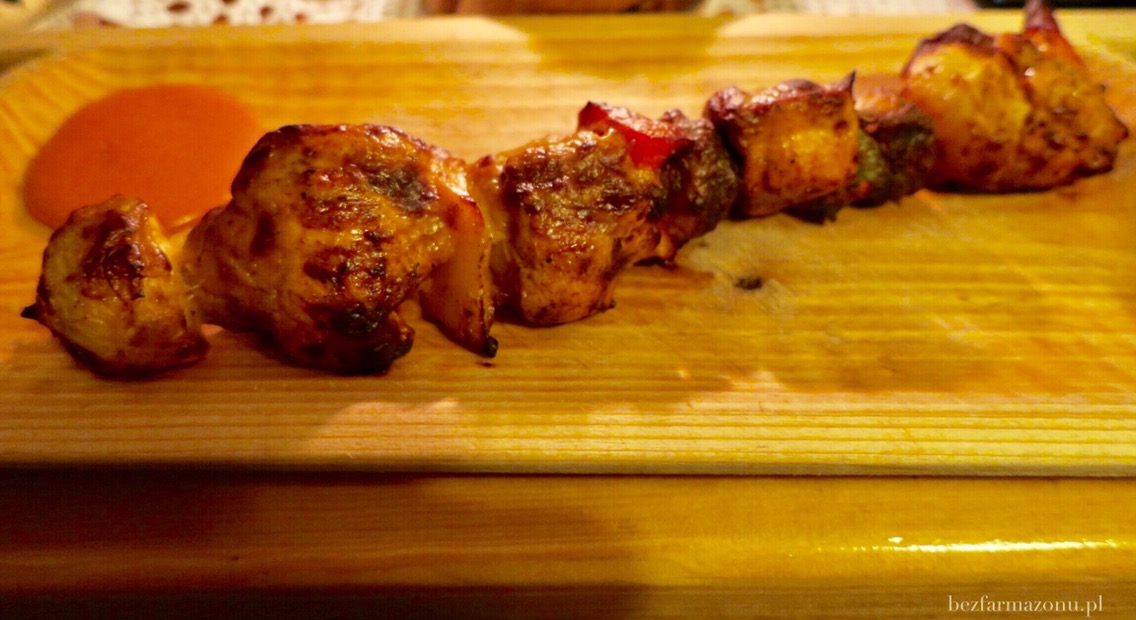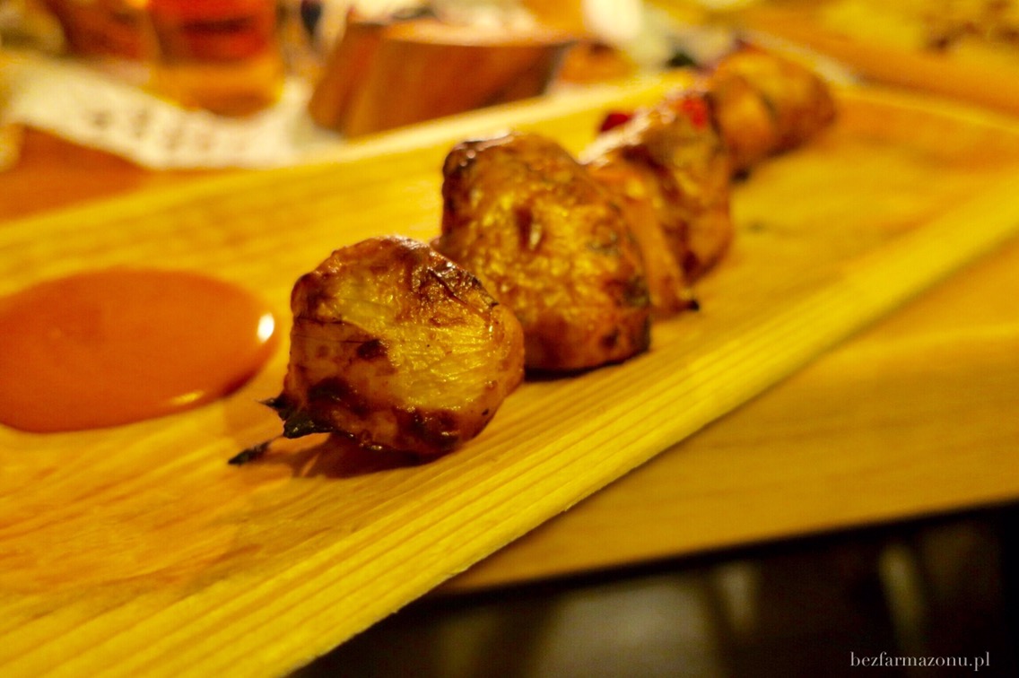 Postanowiliśmy zamówić: chleb ze smalcem i ogórkami, michę pierogów, pierogi ruskie, pierogi z bobem, kaszankę, bigos, moskole. Nie wszystkiemu robiłem zdjęcia gdyż tak szybko się zabraliśmy za pałaszowanie. Mój szaszłyk był dobrze ugrilowany i soczysty. Każda jedna potrawa była smaczna i świeża. Goście zadowoleni, my również.
