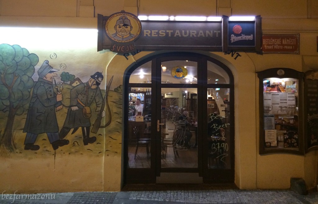 Włócząc się po Pradze restaracji U Svejku widziałem co najmniej kilka. Nie wiem czy w każdej jest to samo i czy ceny są takie same – z zewnątrz prezentują się identycznie.