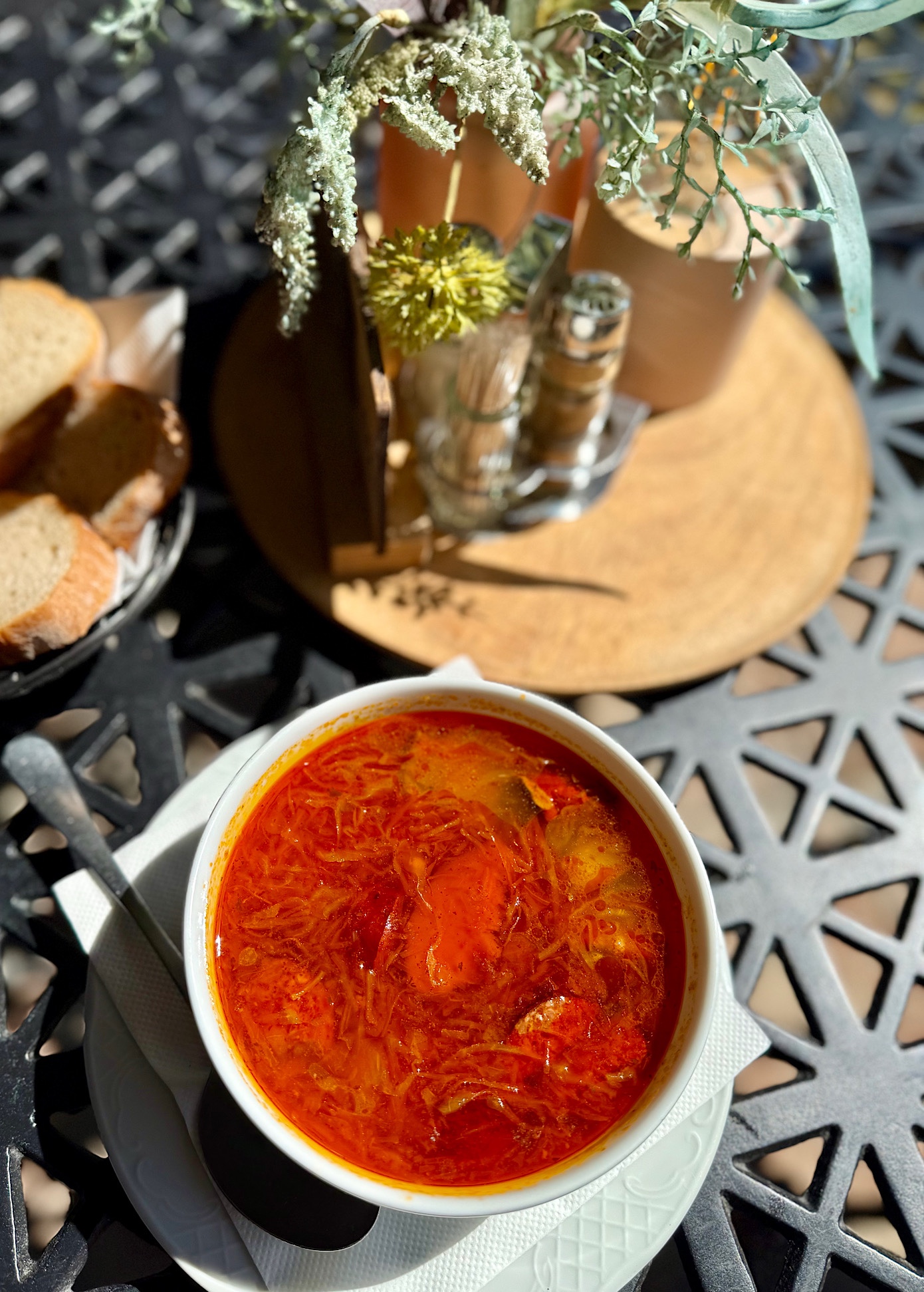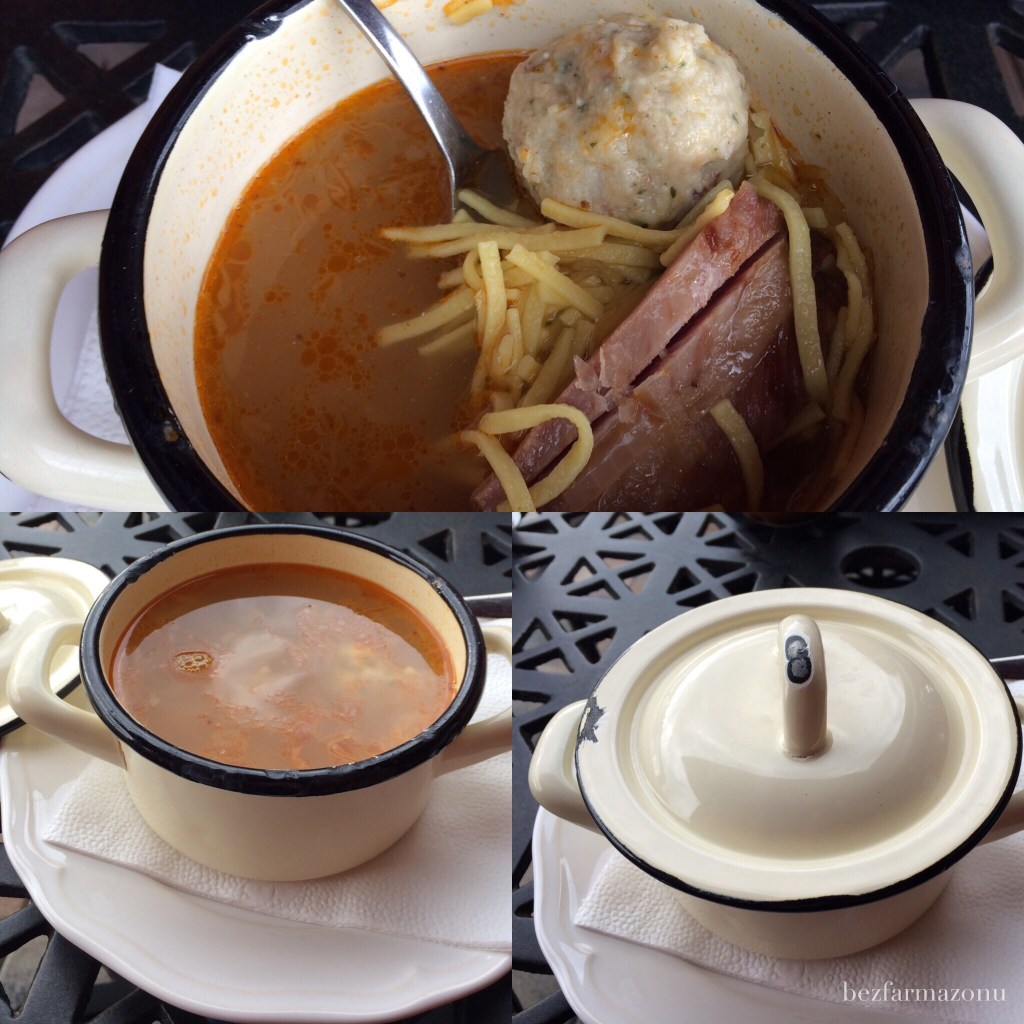 - zupa a’la polska kwaśnica – oryginalnej nazwy z menu nie pamiętam, ale wszystko w niej było dziwne heh. Po pierwsze była z makaronem, po drugie smakowała trochę jak polski żurek, a w środku zawierała kawałek smacznego żeberka i pulpeta z drobiowego mielonego mięsa. Podana w fajnym zamykanym garnuszku.