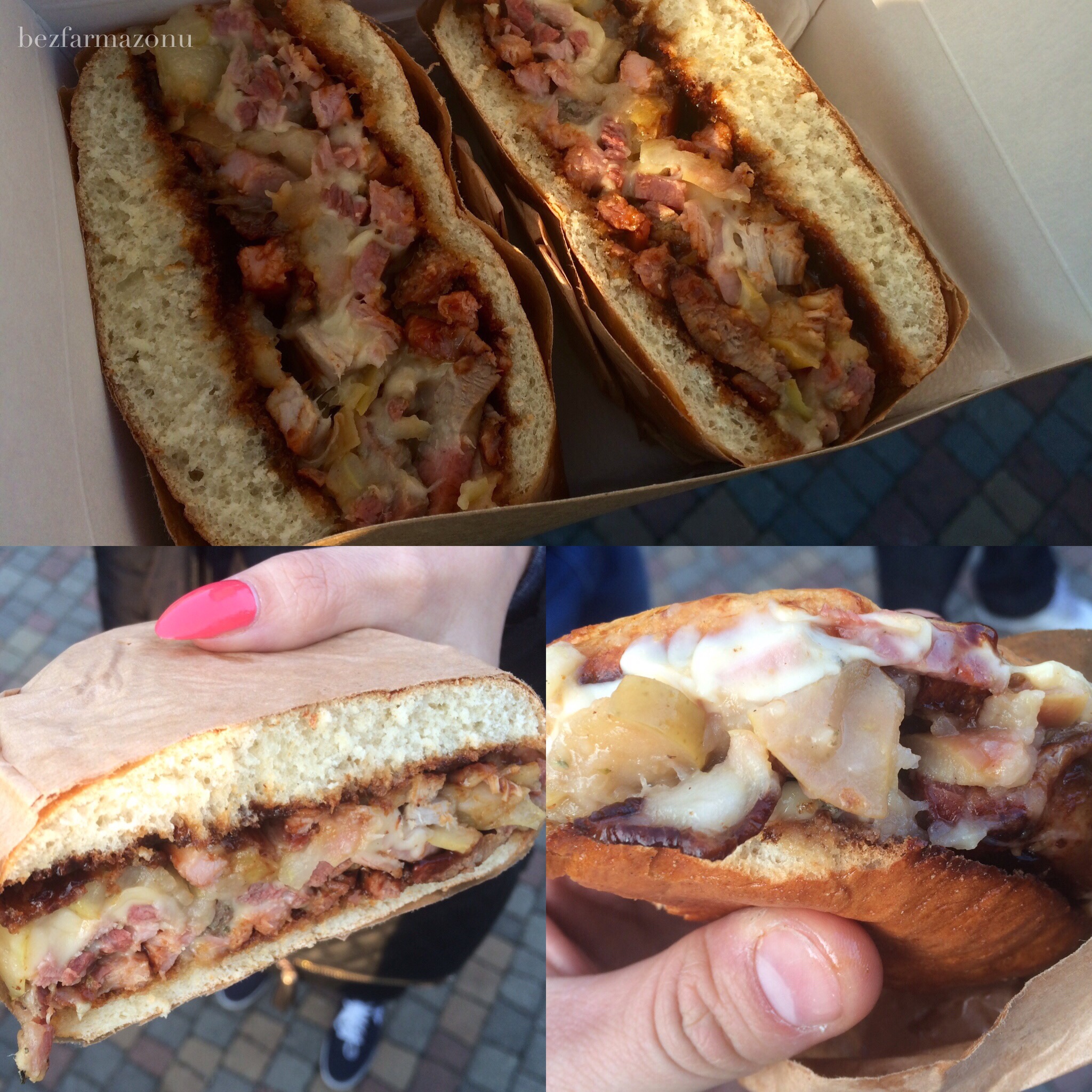 - Skurczybyk (22PLN) – wędzony kurczak wraz z bekonem, chutney’em, sosem musztardowo-miodowym, sałatą, jabłkami i UWAGA masłem orzechowym. Nie bardzo wiem jak mogę słowami zoobrazować doznania kulinarne jakie przeżywałem podczas tego kiedy moje kubeczki smakowe „rozkminiały” każdy gryz. Napiszę więc jednym słowem – BOMBA