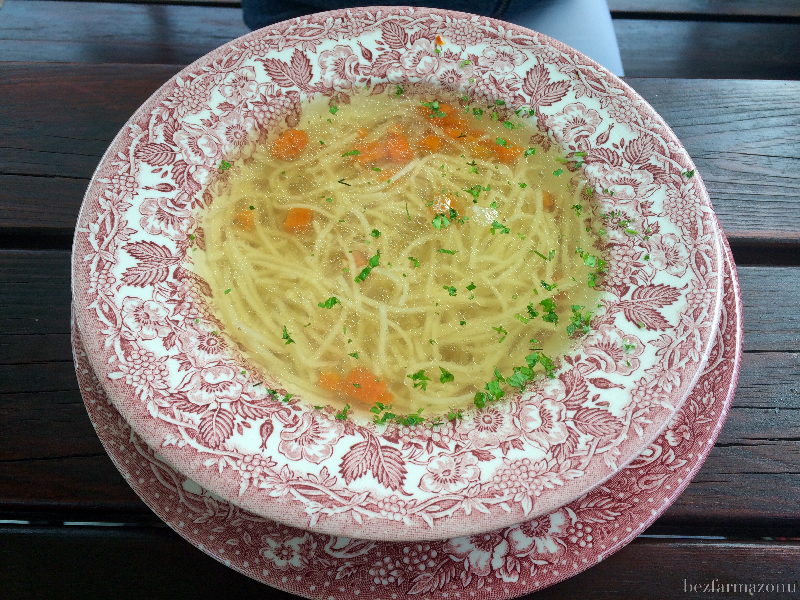 - gorący rosół z makaronem 8PLN – z paroma kawałkami marchewek i dobrym makaronem, nie miał za wiele pieprzu ale był taki jak trzeba, cena też w porządku;