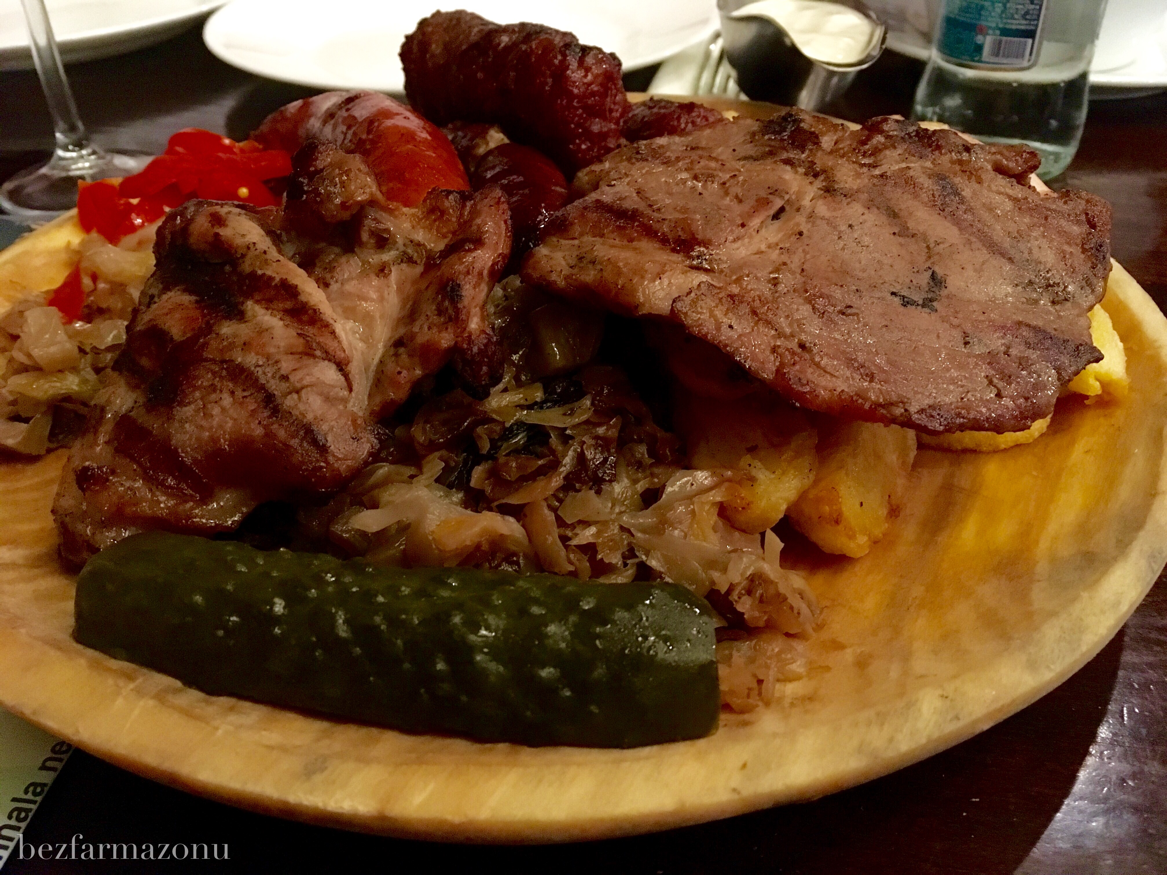 Oprócz wymienionej wcześniej kapusty czymś innym była właśnie „mici” – uformowana kiełbasa z mielonego mięsa wieprzowo-wołowego i przypieczona na grillu. Smakiem przypominała tureckie kiełbaski do kebaba – była delikatna i bez chrząstek, pachniała grillem, wraz z piwem i musztardą super kręciła kubkami smakowymi. Reszta mięs na talerzu też dobra, ale nie różniła się od naszych polskich specjałów.