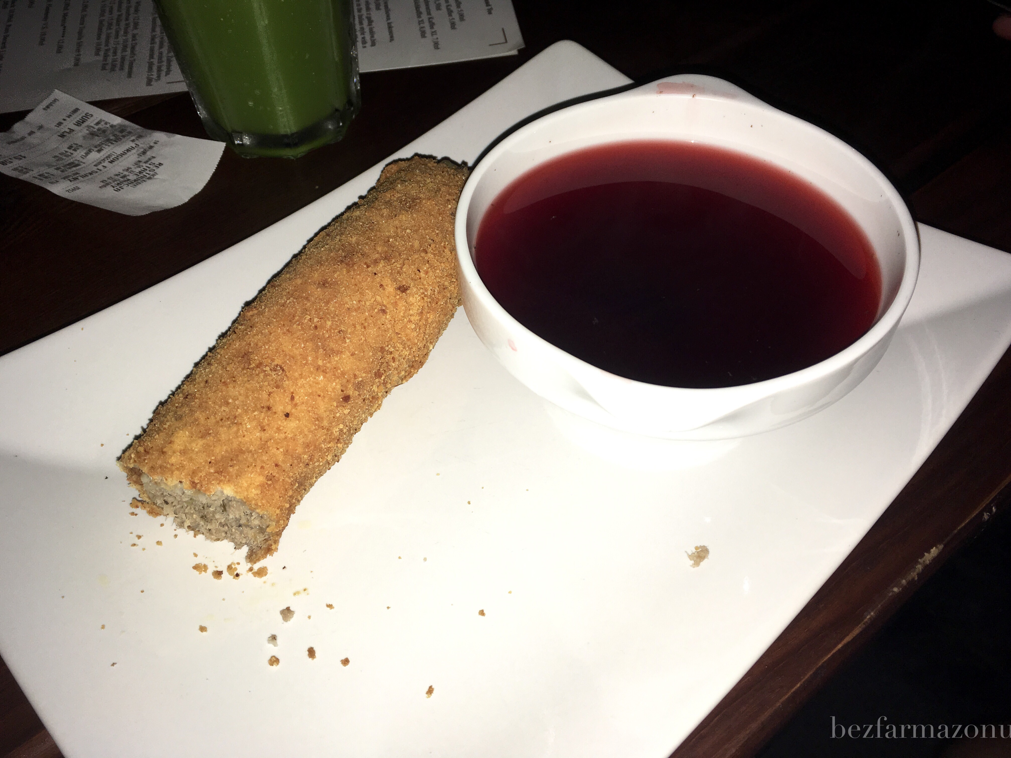 J. wziął barszcz z krokietem z mięsem – 15PLN. Ocenił go dobrze – zaznaczył, że krokiet świeżo smażony, na pewno nie odgrzewany w mikrofalówce.