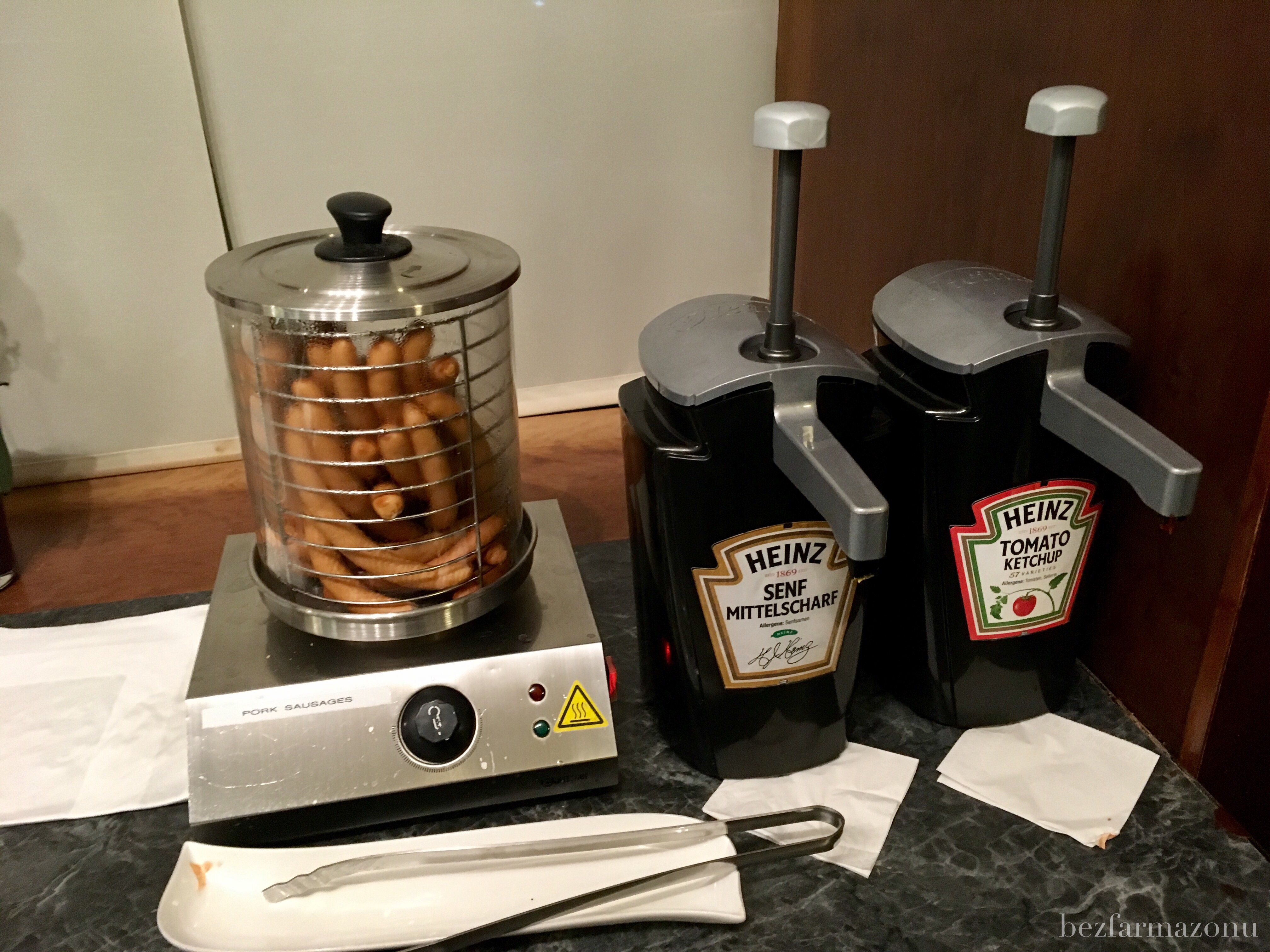 Dla zgłodniałych podróżników znajdzie się też coś na ząb. Do świeżych bułeczek można dobrać sobie sałatkę ziemniaczaną, kawałki zółtego sera i parówki. Na deser krakersy, bakalie, ciastko. Nie ma przepychu, ale z głodu nie umrzemy.