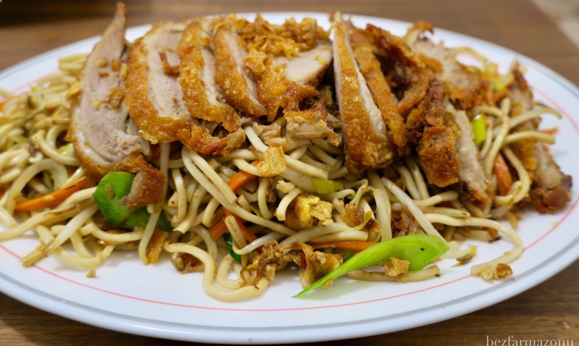 - makaron z rodzaju moich ulubionych – sprężysty i bardzo dobrze przyprawiony sosem sojowym. Podany wraz ze ściętym jajkiem i super świeżymi warzywami. Kacze mięso z usmażoną w bardzo chrupiącym cieście skórą było miękkie i pachnące. Pełny wypas i ogromna porcja.