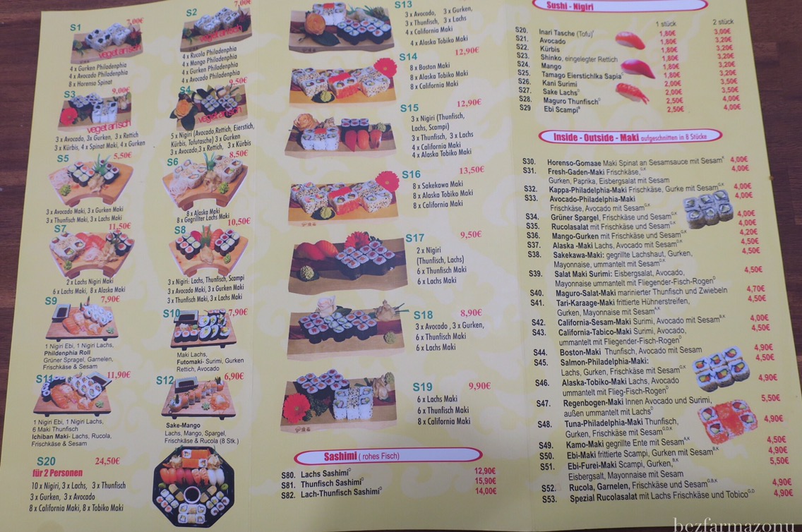 Gdyby ktoś, kiedyś, w jakimkolwiek celu odwiedzał Frankenthal owego streetfooda polecam z pełną odpowiedzialnością. Poniżej załączam menu. Warto wspomnieć iż wielbiciele sushi również nie powinni być zawiedzeni, gdyż w ofercie jest bardzo dużo zestawów i kombinacji.