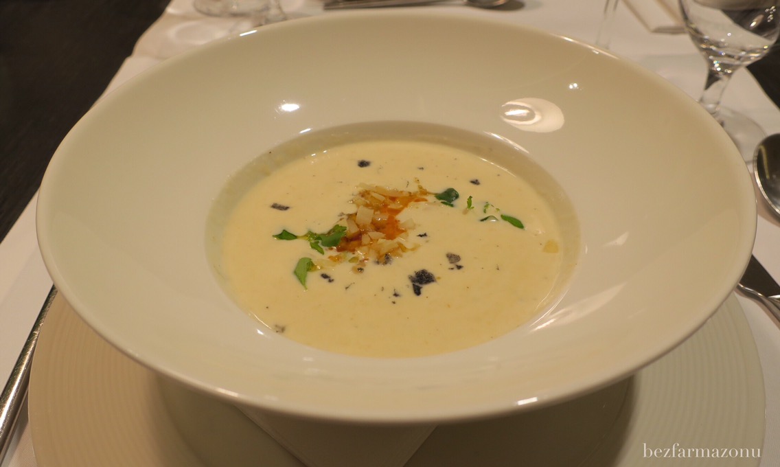 • krem z turbota był ciepły, salsa świeża i nie ciapowata, acz sprężysta z kosteczkami papryki. Rybi zapach i smak był nienachalnie wyczuwalny – taki w sam raz, super.