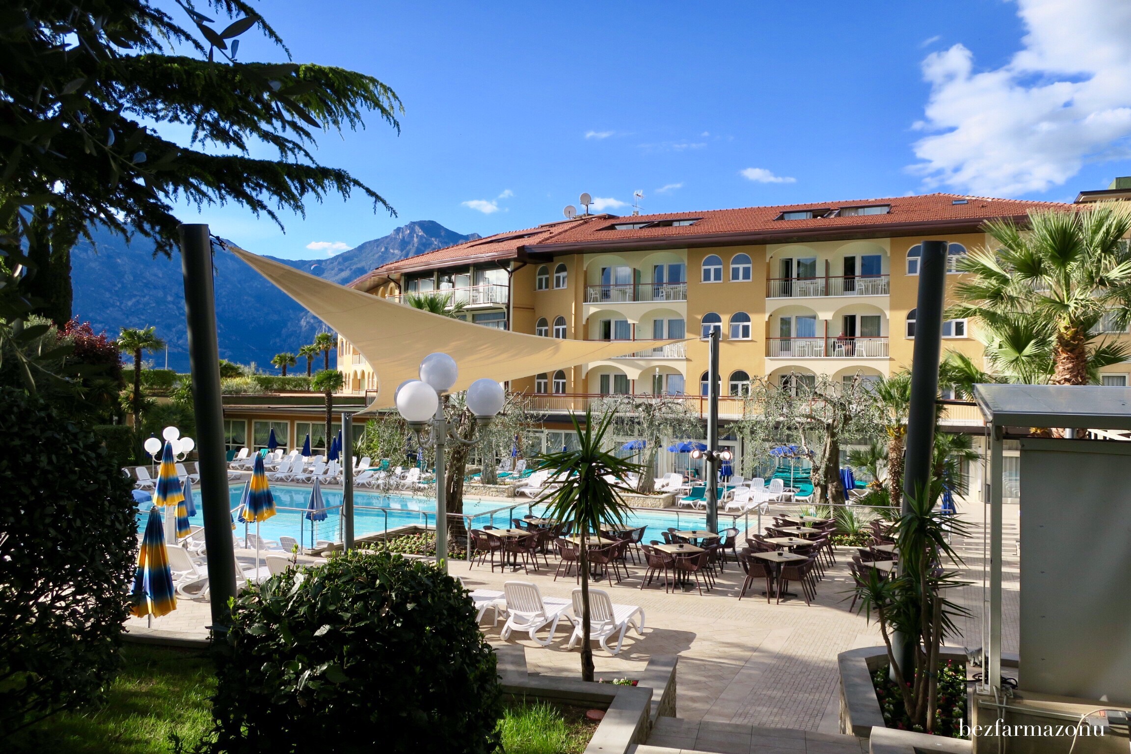 Hotel warty zastanowienia jeśli ktoś lubi takie ogromne kompleksy. Przestronny pokój, dużo zieleni, wiele atrakcji, sympatyczna obsługa. Doskonały jako miejsce wypadowe np. na szczyt Monte Baldo na który można dostać się pieszo lub kolejką linową. Na minus może przemawiać oddalenie od centrum miasta oraz zbyt mało jak na 4* urozmaicone śniadania, widok z parteru też taki sobie. Dopłaty po 1 euro dziennie za sejf czy WIFI to również lekka przesada.