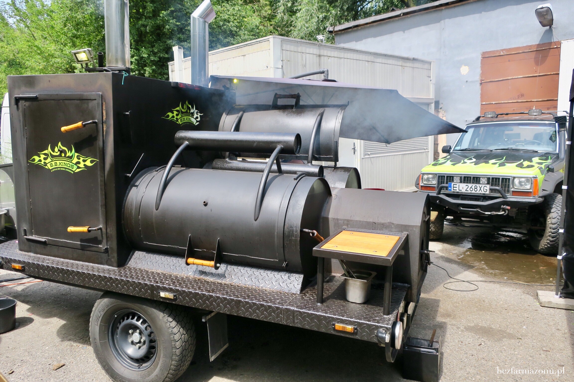 Kucharze B.B Kings przygotowują swoje smakołyki na grillu oraz w komorze BBQ. Aromatyczny zapach dymu, z nutą przypraw i owocowego drewna, mocno wbija się w nozdrza gdy przechodzimy koło ich półtonowej przyczepy.