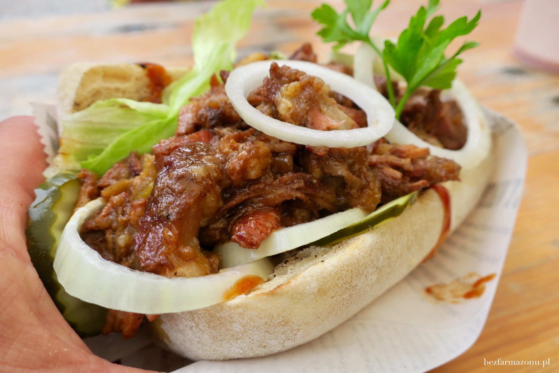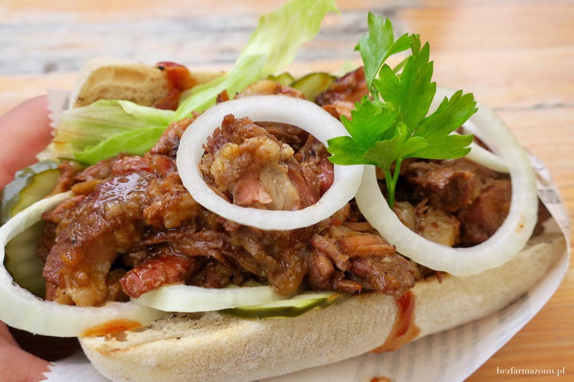 Przygotowywane przez noc mięso było tak miękkie że rozpadało się za minimalnym dotknięciem go zębami. Gorące i ukryte w pszennej bułce mięsiwo w winnej marynacie nie było też bardzo tłuste. Mimo godnej 200g porcji kanapka zniknęła w oka mgnieniu.