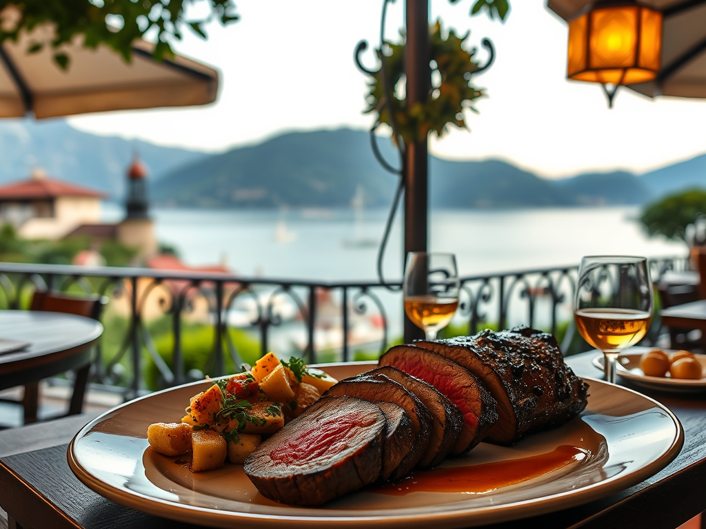Moim głównym zamówieniem była pokrojona w plastry, przyrządzona medium polędwica wołowa podana z fantastycznymi ziemniaczanymi łodeczkami ze skórką oraz sałatką z cukini, papryki i oberżyny. Na plus zaskoczyła mnie cena, gdyż jak za 200g argentyńskiej wołowiny z dodatkami 15 euro zdecydowanie nie było wygórowaną kwotą. Danie super, mięso w punkt – całość świetna !