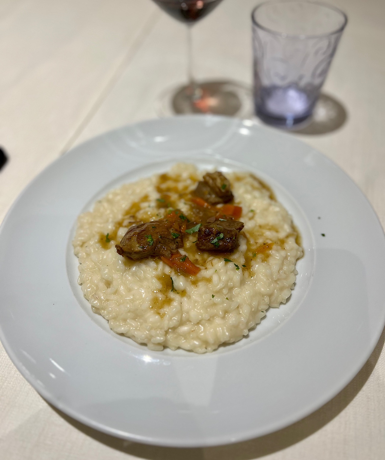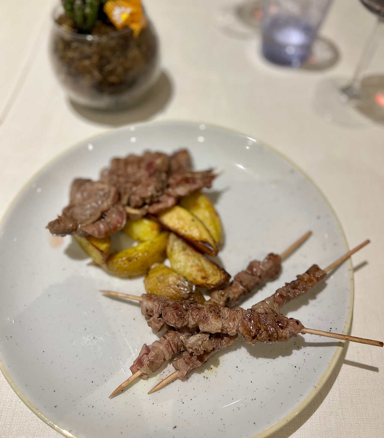W cenie 50 Euro od osoby dostaliśmy deskę przekąsek, wybitne kluseczki, risotto oraz szaszłyki z jagnięciny.