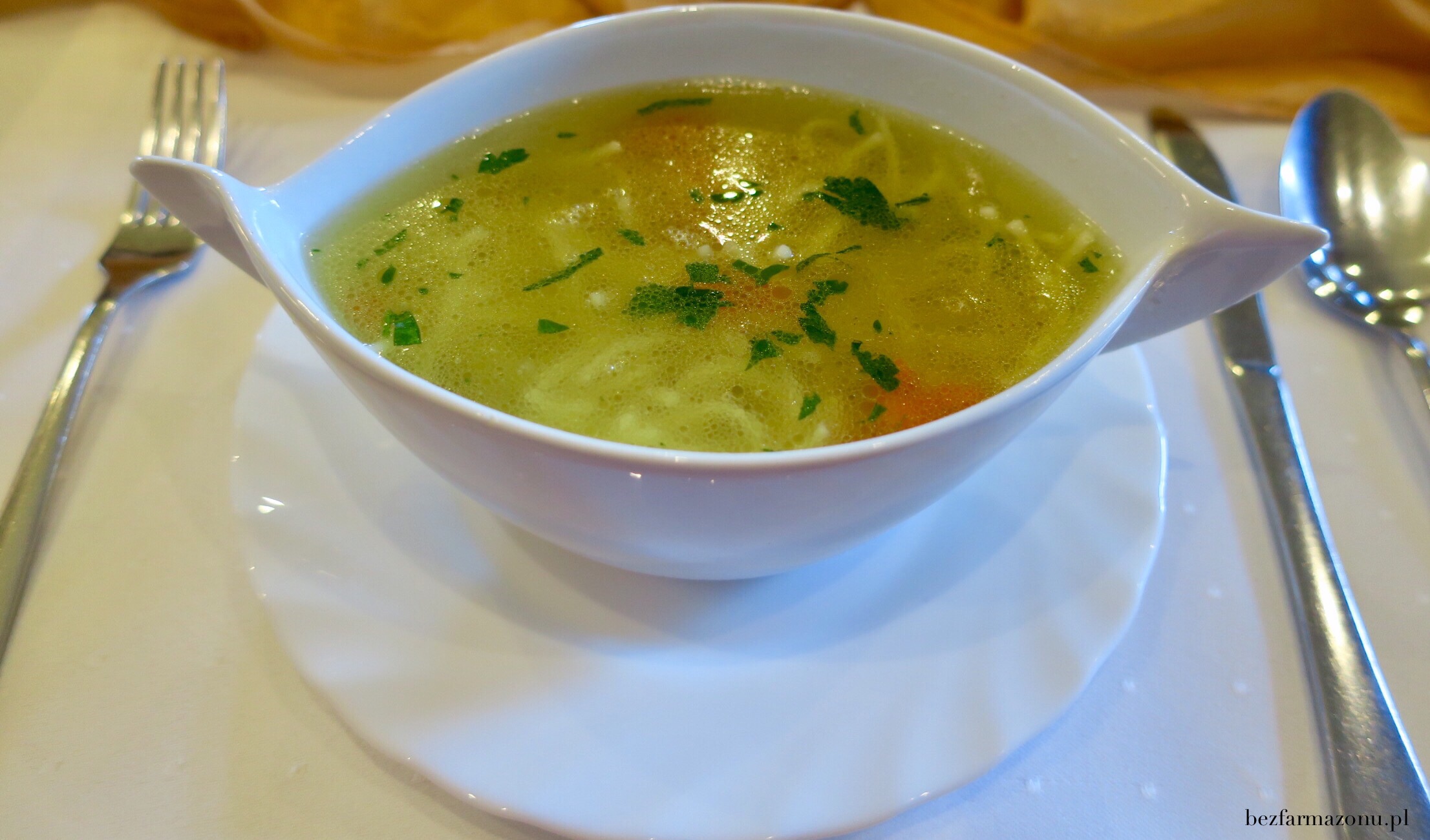 - rosół z makaronem (6 PLN) – bez charakteru i smaku, podobnie jak…