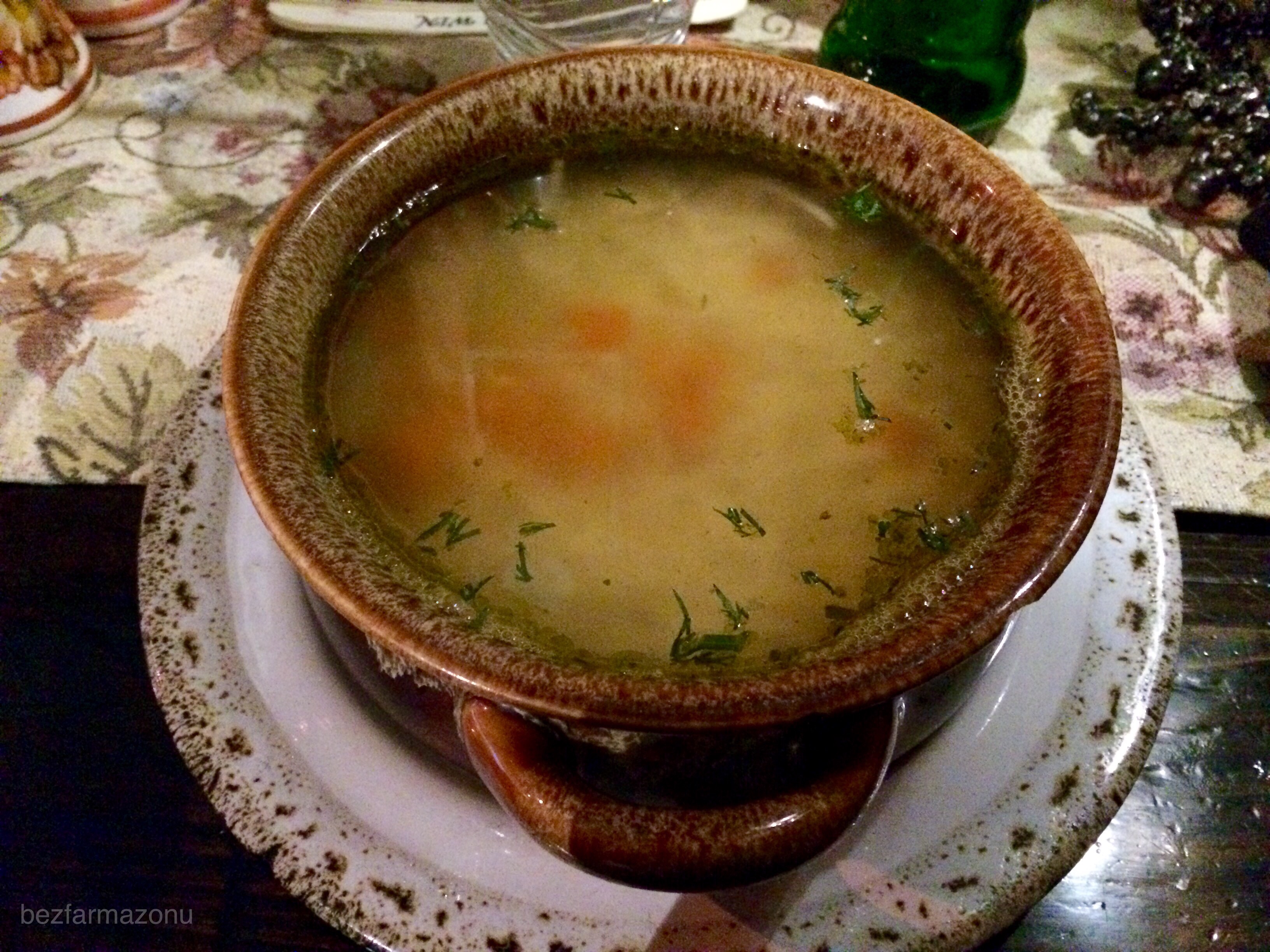 Kelnerka podała karty z których zamówiliśmy dwie zupy oraz kilka dań. Polewki przyszły po około dziesięciu minutach.