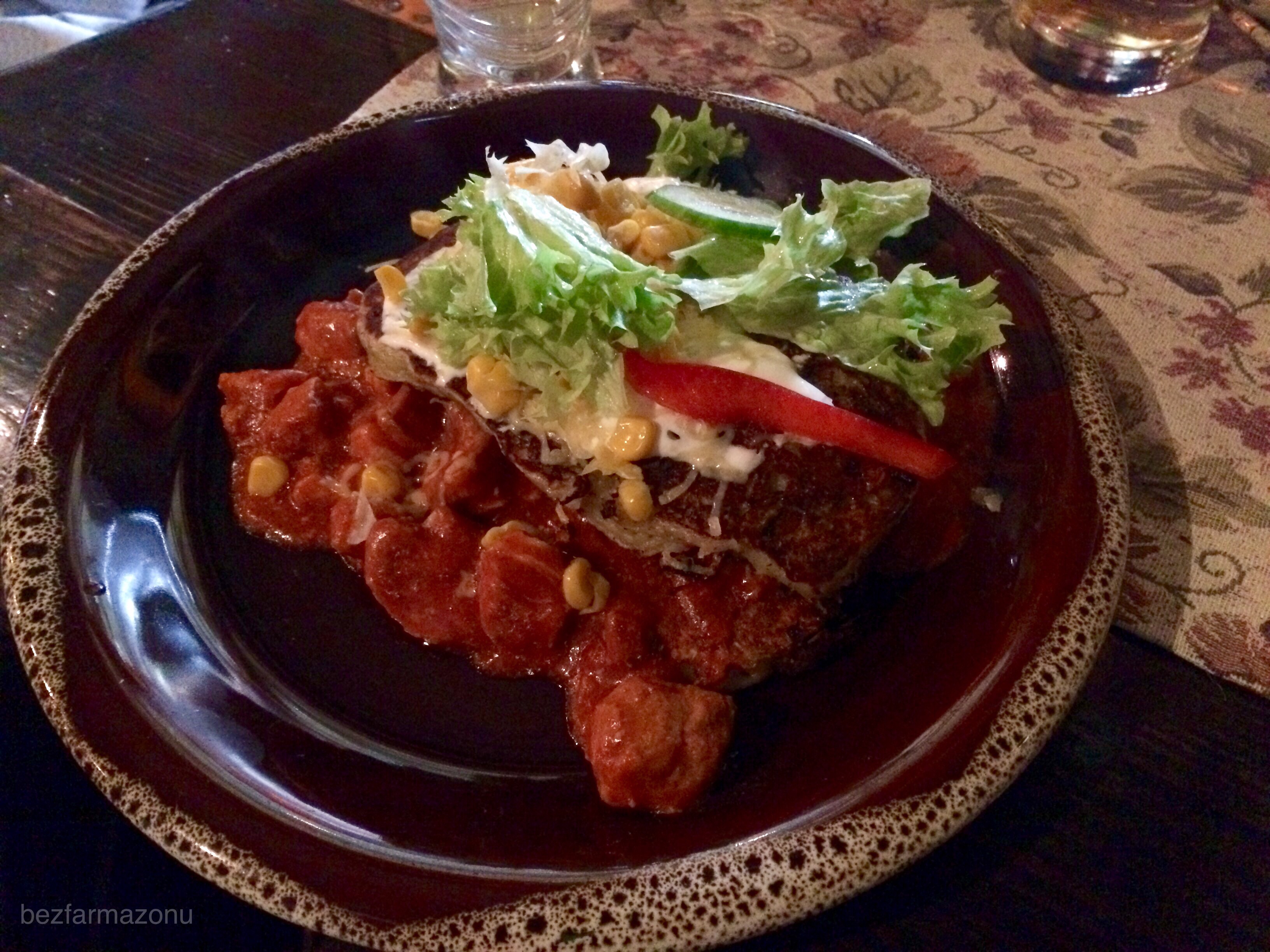- placek zbójnicki z mięsem wieprzowym, śmietaną i serem przez dziewczyny został oceniony jako „przyzwoity i poprawny„. Mięso niestety w 1/4 było tłuste. Jak za 28 złotych i świnkę zamiast woła to średnio atrakcyjna oferta.