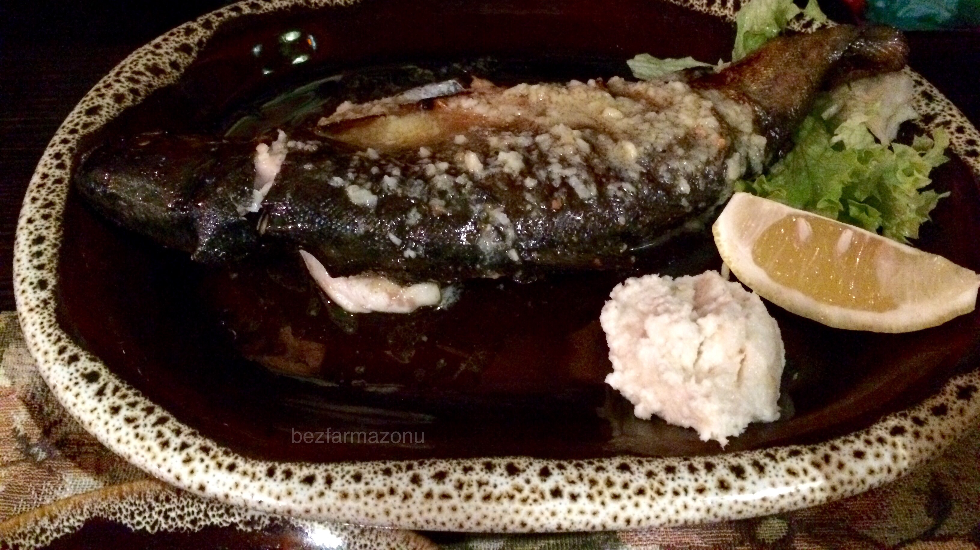 - podany z chrzanem i cytryną usmażony na maśle pstrąg za 24PLN M. bardzo zachwalała – mi również smakował. Jego bielutkie, miękkie mięsko z łatwością odchodziło od skóry i kręgosłupa – rybolubnym będzie smakował.