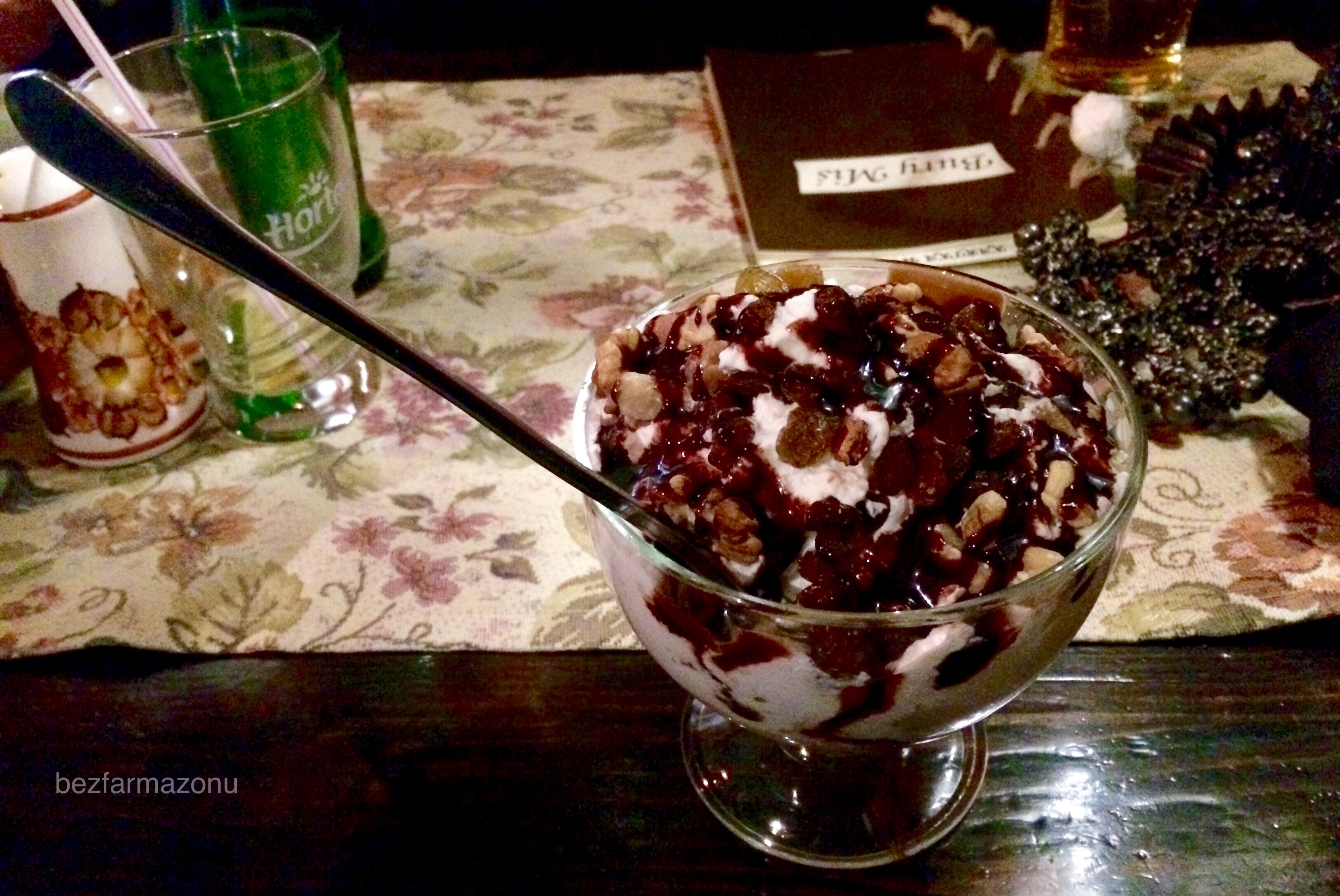 Na deser ciepła gruszka za 15tkę podana z lodami, posypana bakaliami i oblana słodką polewą. Każdy z nas spróbował i ocenił pozytywnie.