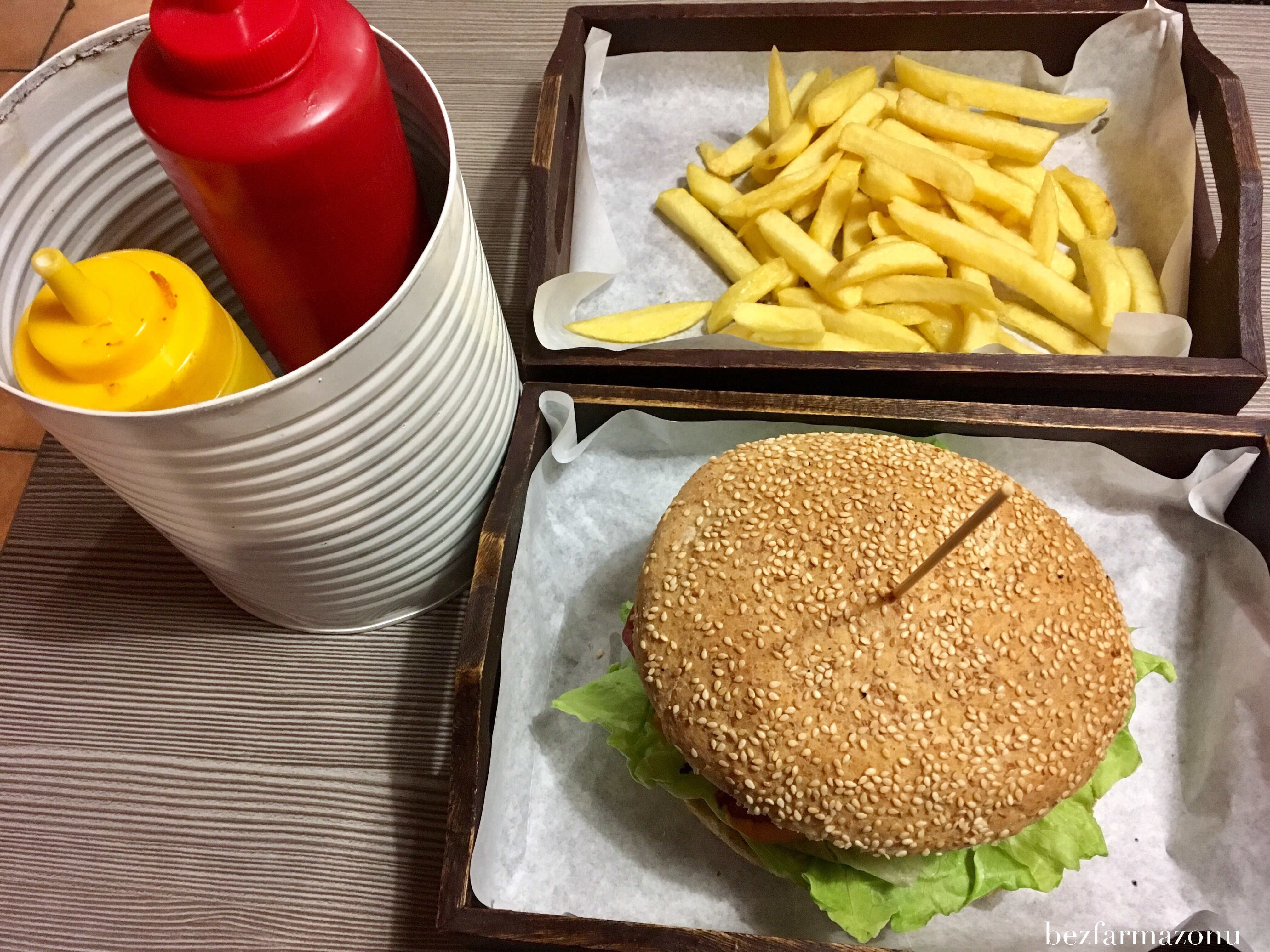 Najsłabszym ogniwem okazało się niestety mięso… Zawsze charakteryzowała je duża twardość i zwięzłość, lecz tym razem kotlety były dwa i kurcze co tu owijać w bawełnę – ich gryzienie nie należało do przyjemnych. Nie dość, że za mocno zgrillowane, to nie soczyste i za mało przyprawione.