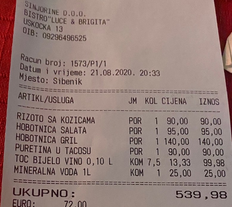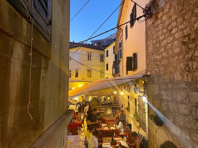 Kręcąc się od dłuższego czasu po Sibeniku postanowiliśmy znaleźć przyjemną restaurację i przy butelce wina zjeść coś dobrego. W mapach gugla wynalazłem resto z setkami pochlebnych opinii – bez dłuższego namysłu skierowaliśmy się do Luce & Brigita.