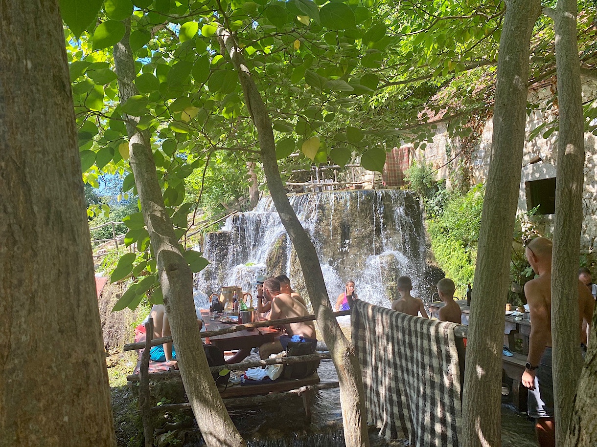 Ależ to jest miejscówka! O wow! Restauracja Kristijan ulokowana jest przy jednym z wodospadów w Parku Narodowym Krka. Naturę można dosłownie poczuć stopami! Z małego wodospadu spływa woda, a przy odrobinie szczęścia można zająć miejsce przy stołach, które są dosłownie w wodzie!