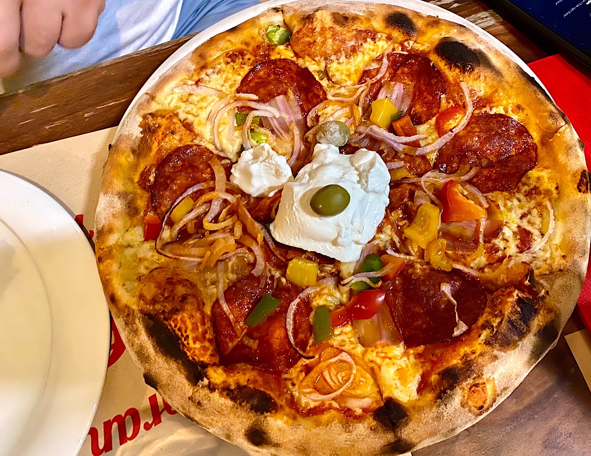 Coś nas kiedyś podkusiło aby tuż obok naszej ulubionej knajpy (opisanej niżej) zasiąść na pizzę. Już w trakcie oczekiwania na dwa placki coś nam mówiło, że nie będą to placki naszego życia.