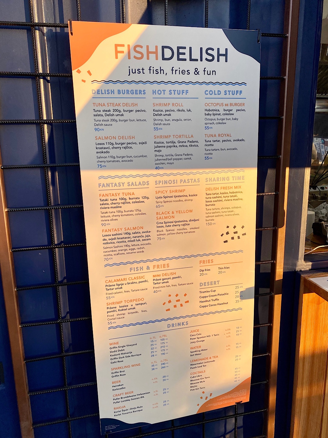 Kanapki kosztują pomiędzy 25 – 35 kun. Niewątpliwie w Vodicach jest to najlepsza alternatywa dla okrutnie słabej jakości oferowanego dookoła fastfoodu.