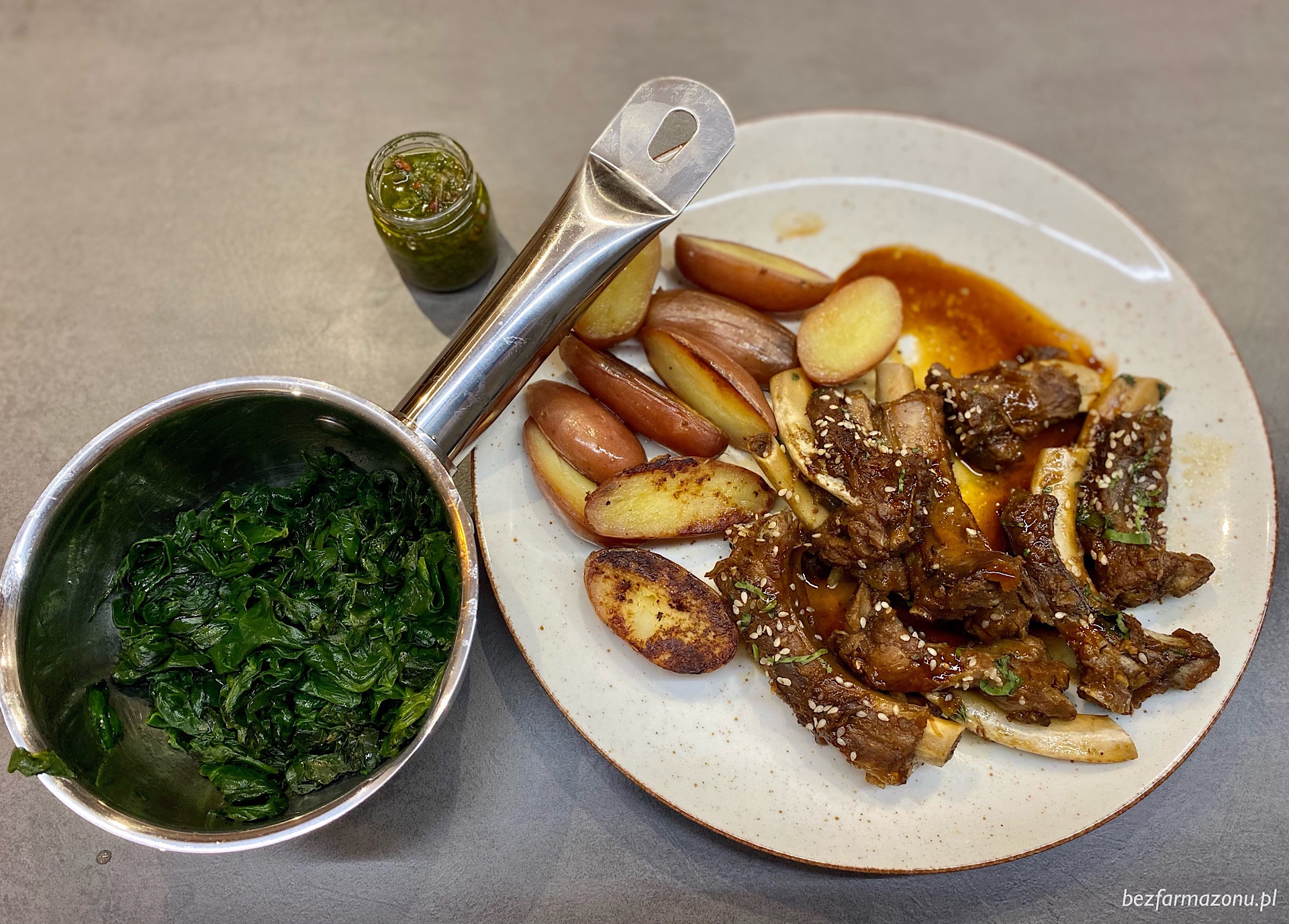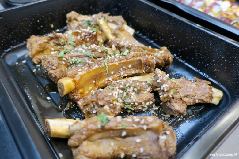 Żeberka Iberico (40 PLN) to propozycja dania głównego. Porcja to 250g żeberek z mięsem które wystarczy w domu podgrzać na patelni, bądź w piekarniku.