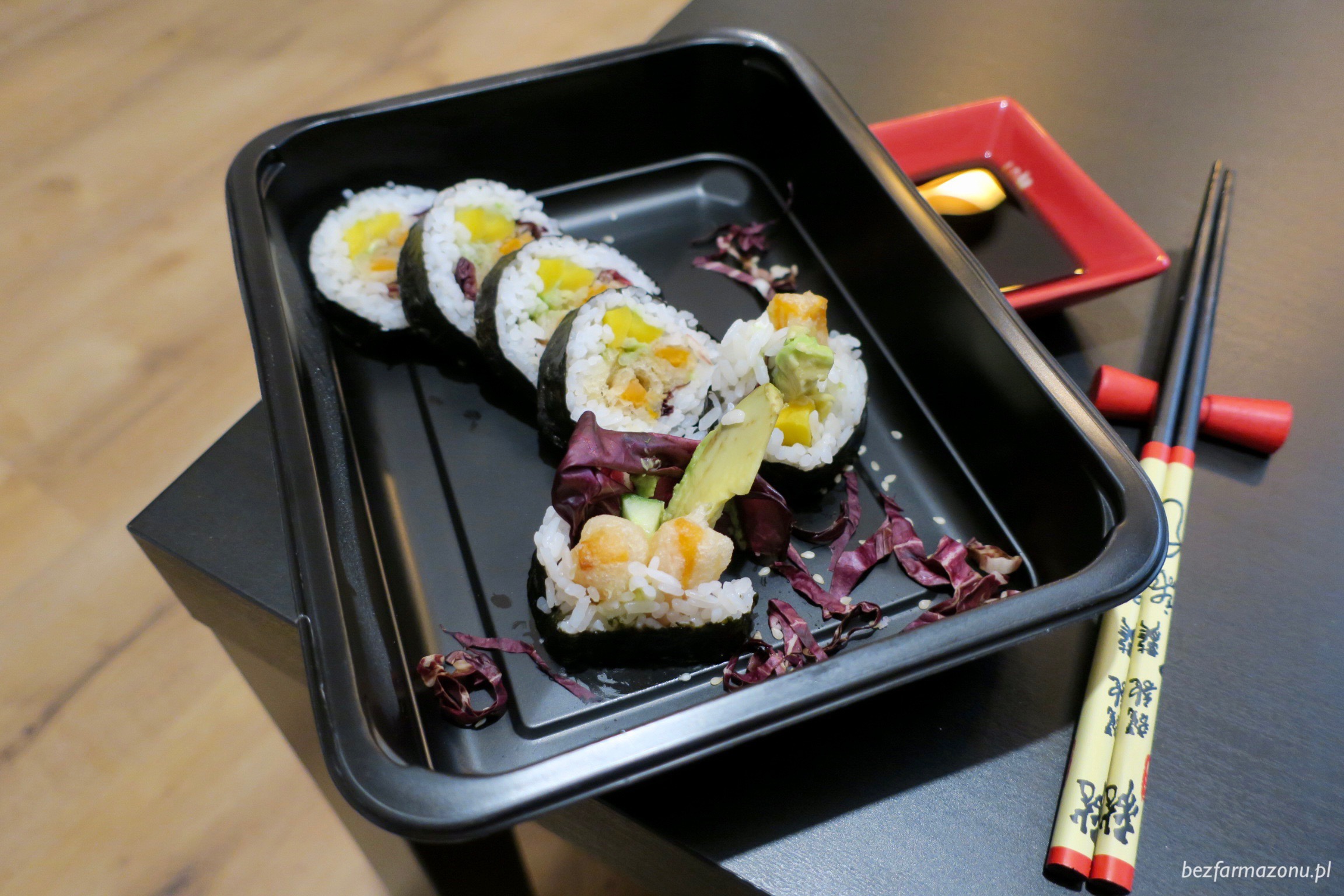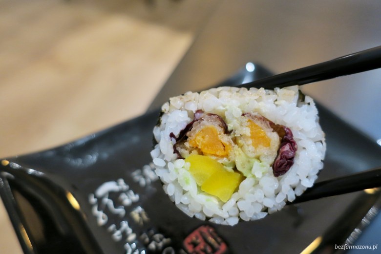 W warzywnych futomakach (20 PLN) odnajdziecie marchewkę, ogórka, batata w tempurze, sezam, serek kremowy i wasabi