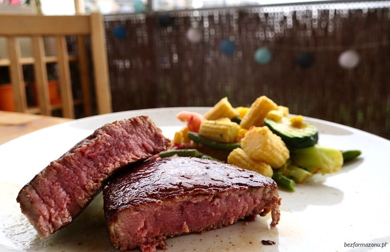 Steki uwielbiam wysmażone medium rare – szczególnie polędwicę, jednak nie każdy z mojego towarzystwa takowe preferuje, więc trochę wbrew sobie odrobinę je przez dodatkowe kilkadziesiąt sekund podciągnąłem.