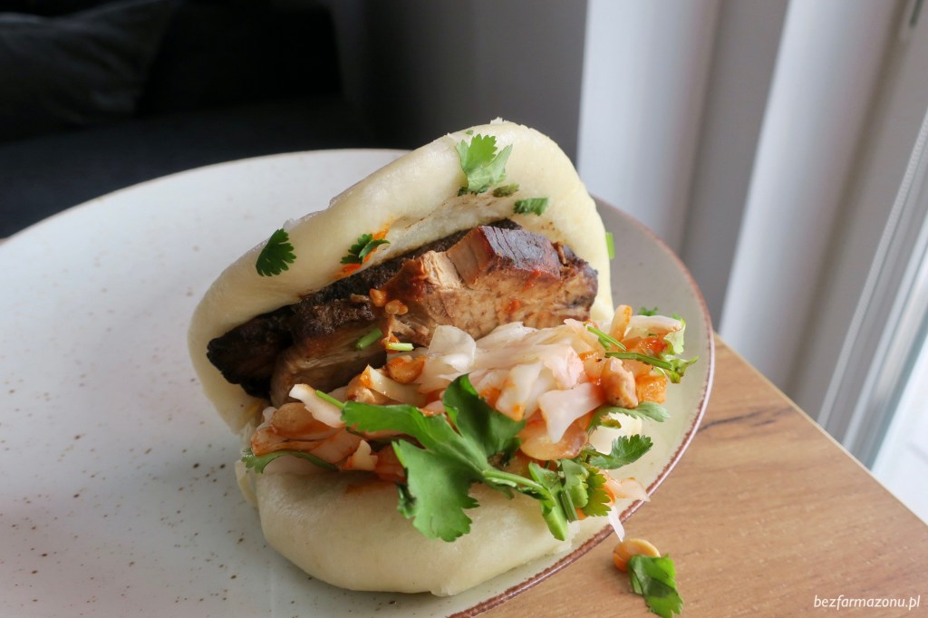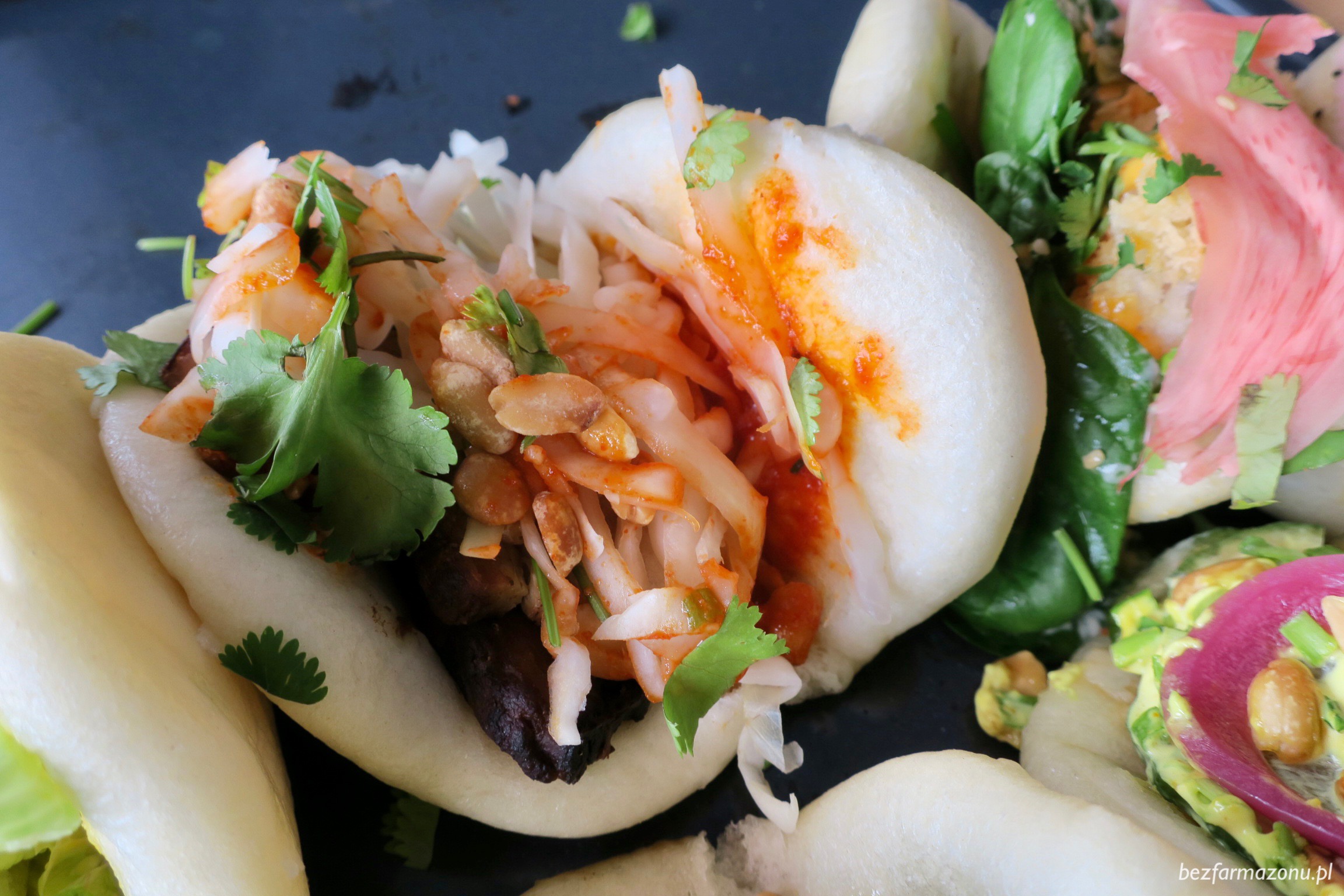 - bao z grubym plastrem miękkiego PIECZONEGO BOCZKU (15 PLN), chrupiącą pod zębami piklowaną kapustą, orzeszkami ziemnymi, srirachą i kolendrą kupiło mnie delikatną pikanterią oraz aromatycznym wieprzkiem. Tę opcję polecam na zimowe wieczory 🙂