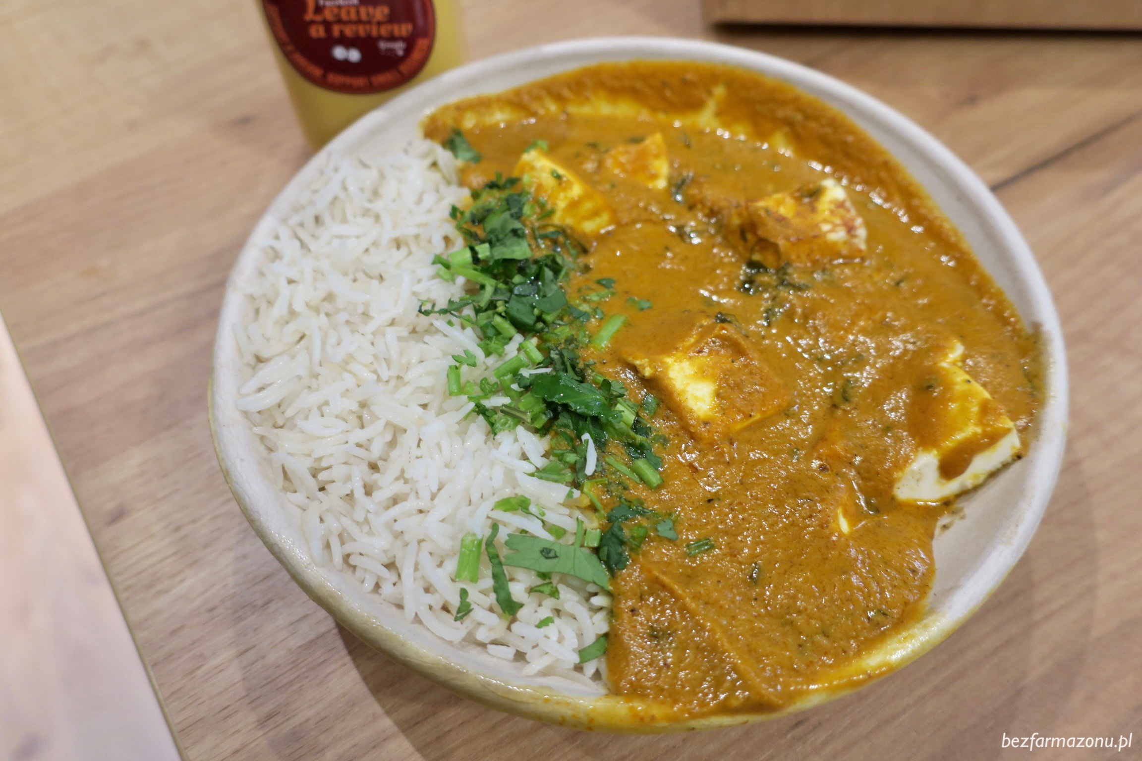 • The Masala Butter Paneer Rice Bowl (25 PLN) to ser indyjski w delikatnym maślanym, pomidorowo-orzechowym sosie. Podawany z aromatycznym ryżem basmati głaszcze kubki smakowe kozieradką i super puszystym nabiałem. Vegetarianie i mięsarnianie bedą bardzo zadowoleni, takowoż jak i ja byłem po owego dania zjedzeniu.
