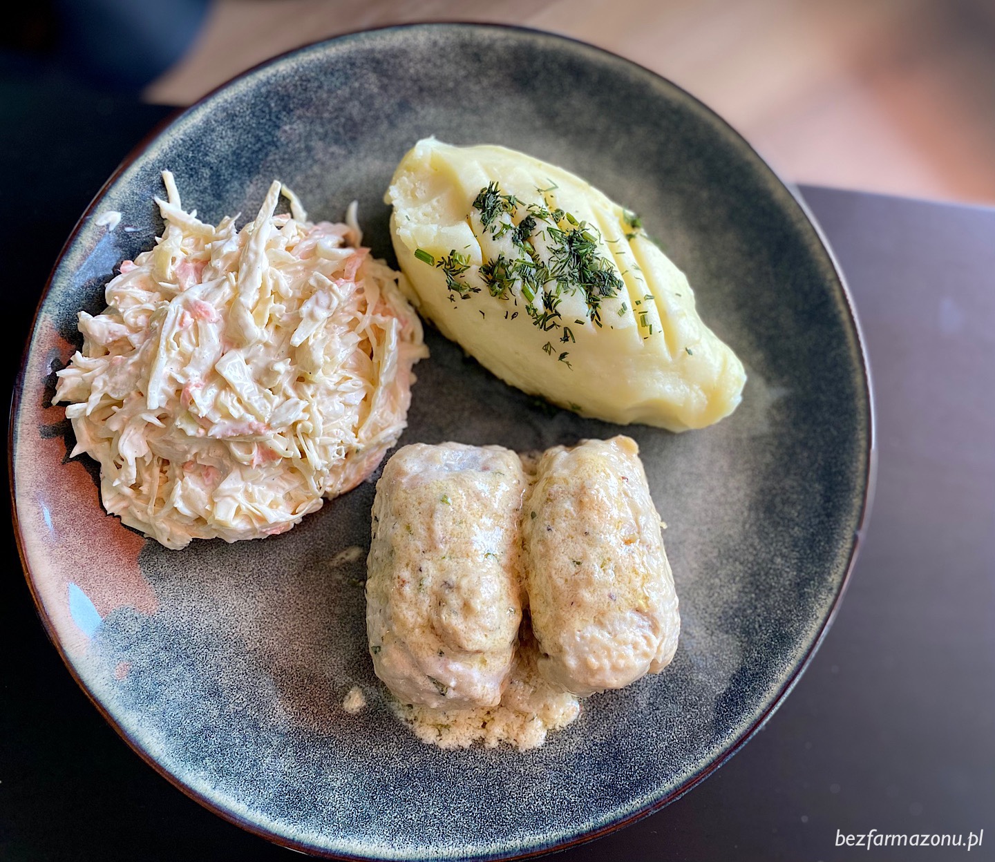Konsumpcji faszerowanych pieczarkami roladek drobiowych (27 PLN) z ziemniaczanym puree oraz surówką z białej kapusty dokonałem tego samego dnia, lecz późniejszą porą w domu. Polany sosem śmietanowym drób wyładowano po same brzegi, pachnące masłem ziemniaki ubito na puree jak należy, surówce nie pożałowano śmietany. Obiad sycący i zjedzony z uśmiechem na twarzy, chociaż kosztem ilości pieczarek wolałbym trochę więcej mięsa.