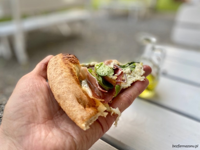 Pizze są wypiekane w piecu opalanym drewnem. Daleko im do moich ulubionych wyrośniętych neapolitańskich czy chrupiących rzymskich, ale dają radę. Ciasto jest odrobinę wyrośnięte na bokach i cienkie w środku. To bezpieczny rodzinny wybór. Przydałaby się jednak lepsza oliwa, gdyż ta podawana w dzbanuszkach jest strasznie nijaka. Nie cierpka i jakby rozcieńczona – zamiast pomagać, psuje. Ble.