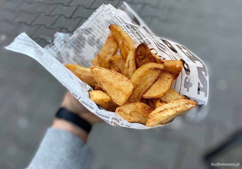 Do hambugsów dobraliśmy również frytki (8 PLN). Nie są to fryty standardowe, lecz nieregularne z prawdziwych ziemniaków. Usmażone jak w domu na brązowo i miękko (przeciwieństwo belgijskich). Nie wiem czemu, ale smakowały mi bardziej jak odrobinę ostygły.