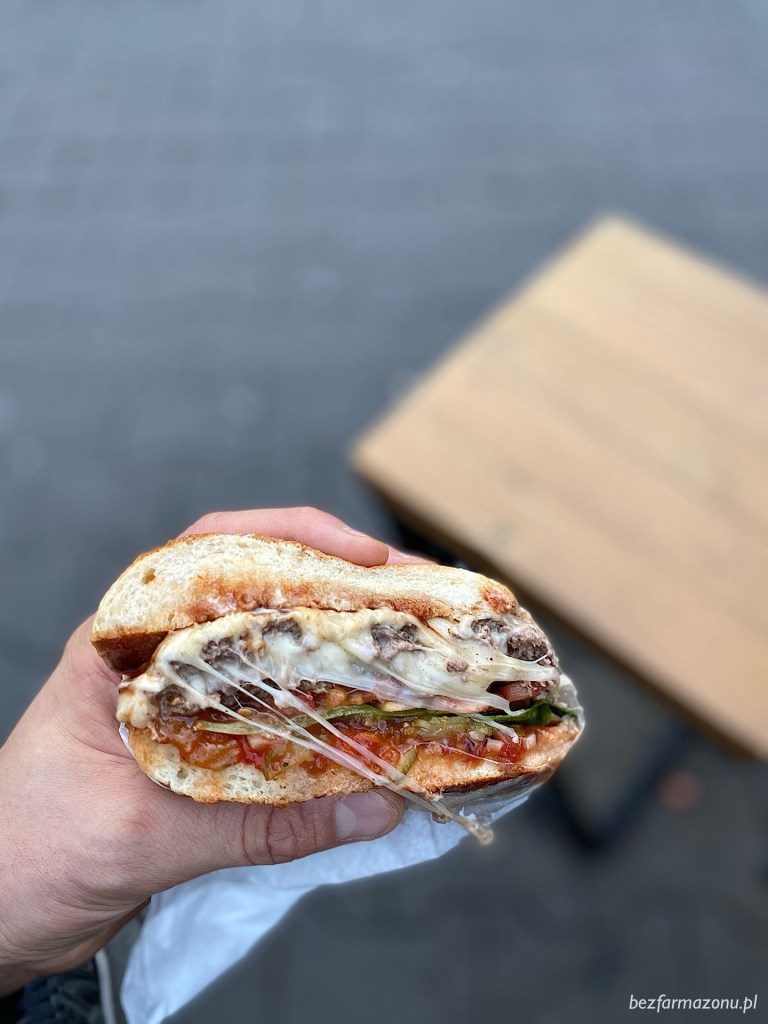 W lutym 2021 namówiłem P. i S. aby zamówić stamtąd lunch do biura. W owym czasie burgerownia nie współpracowała z żadnym z popularnych dowożących strawę portali, więc po jedzenie musieliśmy wybrać się sami. Zamówiliśmy trzy burgery oraz dwie paczki frytek – rachunek opiewał na 85 złotych.