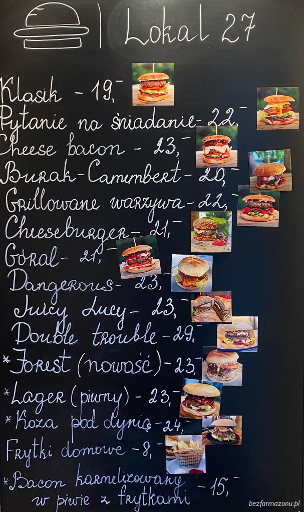 - Cheese Bacon (23 PLN) D. z powodu swojej redukcji poprosił bez sera i majonezu.