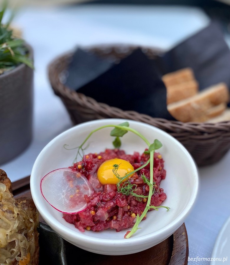 Do jednej z wyżej wymienionych przystawek (najprawdopodobniej befsztyka tatarskiego) podano smaczne, wypiekane na miejscu pieczywo.