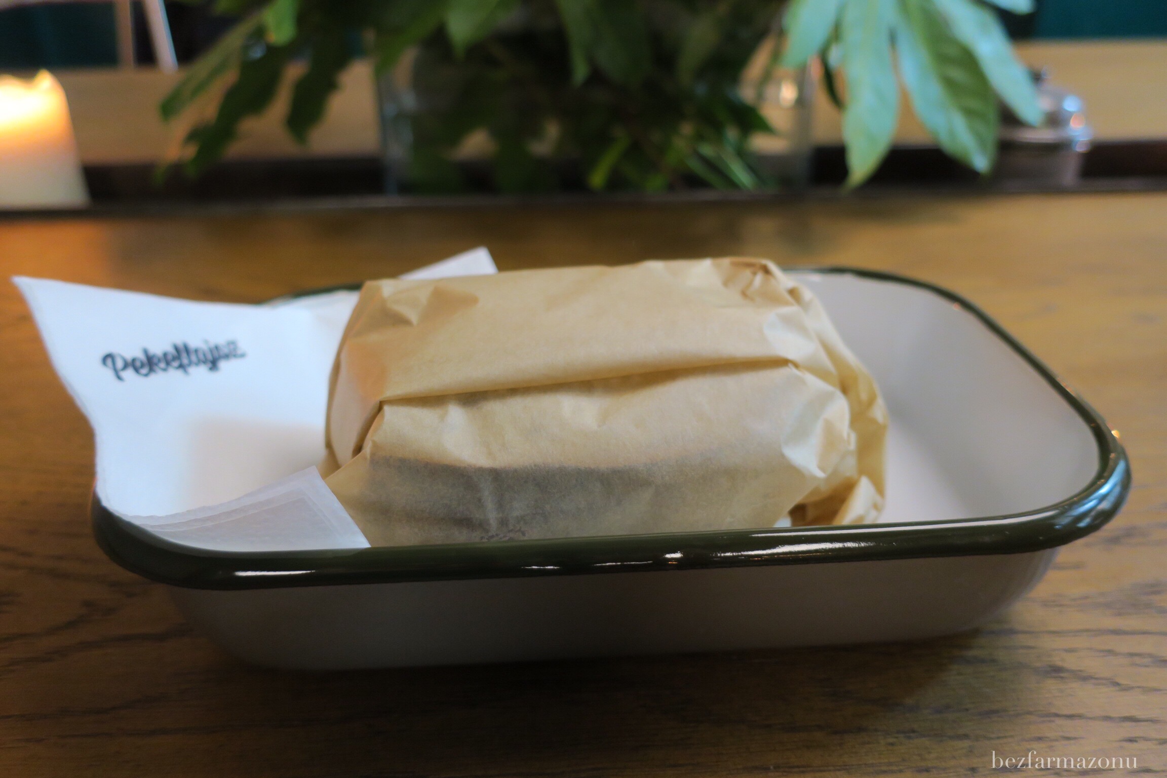 - drugi wybór – buła z rostbefem (32 PLN). Tą w przeciwieństwie do polików podaje się w chrupiącej i ciepłej ciabatcie – jest bardzo sycąca, ale również trochę za sucha – dałbym jej więcej sosu.