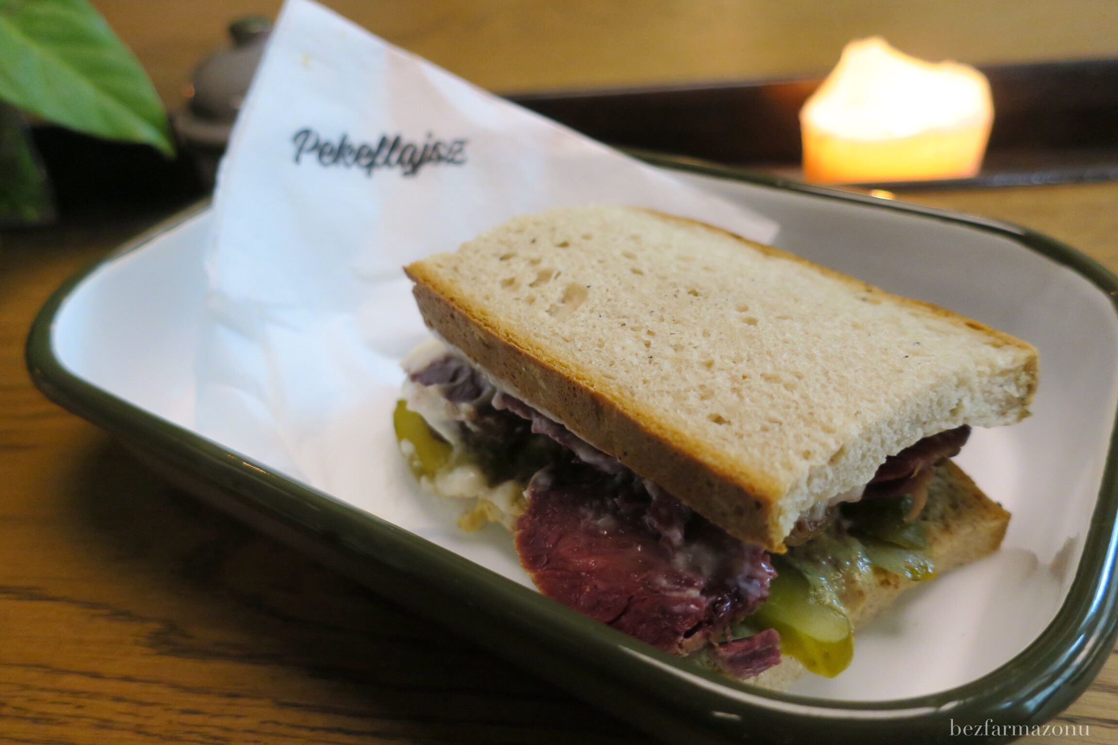 Oprócz powyższego, dane mi było spróbować kanapki z peklowanymi policzkami wołowymi. Kanapka kosztowała 25 złotych i aż szkoda było ją jeść – taka była ładna. Dodatki w formie słowackiej musztardy, ogórka i sosu chrzanowego miały zachowane poprawne proporcje, nie zakłócały smaku i zapachu mięciutkiej i przeraźliwie soczystej wołowinki.