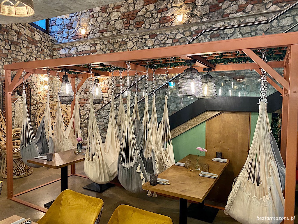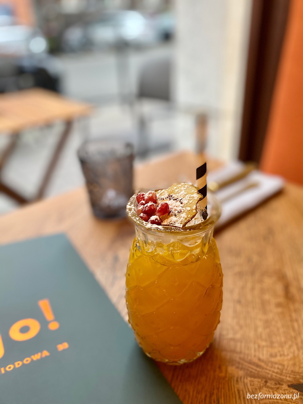 Oczywiście nie siedzieliśmy o suchych pyskach, lecz raczyliśmy się prezentującymi słodkie i orzeźwiające nuty koktajlami. Oprócz nich testowaliśmy jeszcze jeden, ale biedak nie załapał się na fotę. Coś czuję w kościach, że to właśnie dla karty alkoholi stworzono te huśtawki z dolnej sali (na zdjęciach w pierwszym akapicie tego postu).