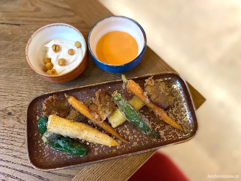 Dla warzyw w tempurze z wegańskimi majonezami: klasycznym oraz paprykowym (29 PLN) mógłbym zostać wyznawcą kuchni bezmięsnej. Kukurydza, papryka, marchewka, grzyb – nie ociekały tłuszczem, a chrupały jak szalone! A te sosy – konia z rzędem temu kto rozpoznałby iż do produkcji tych gęstych i epatujących smakiem majonezów nie użyto jajek! Zestaw smakował jak milion dolców.