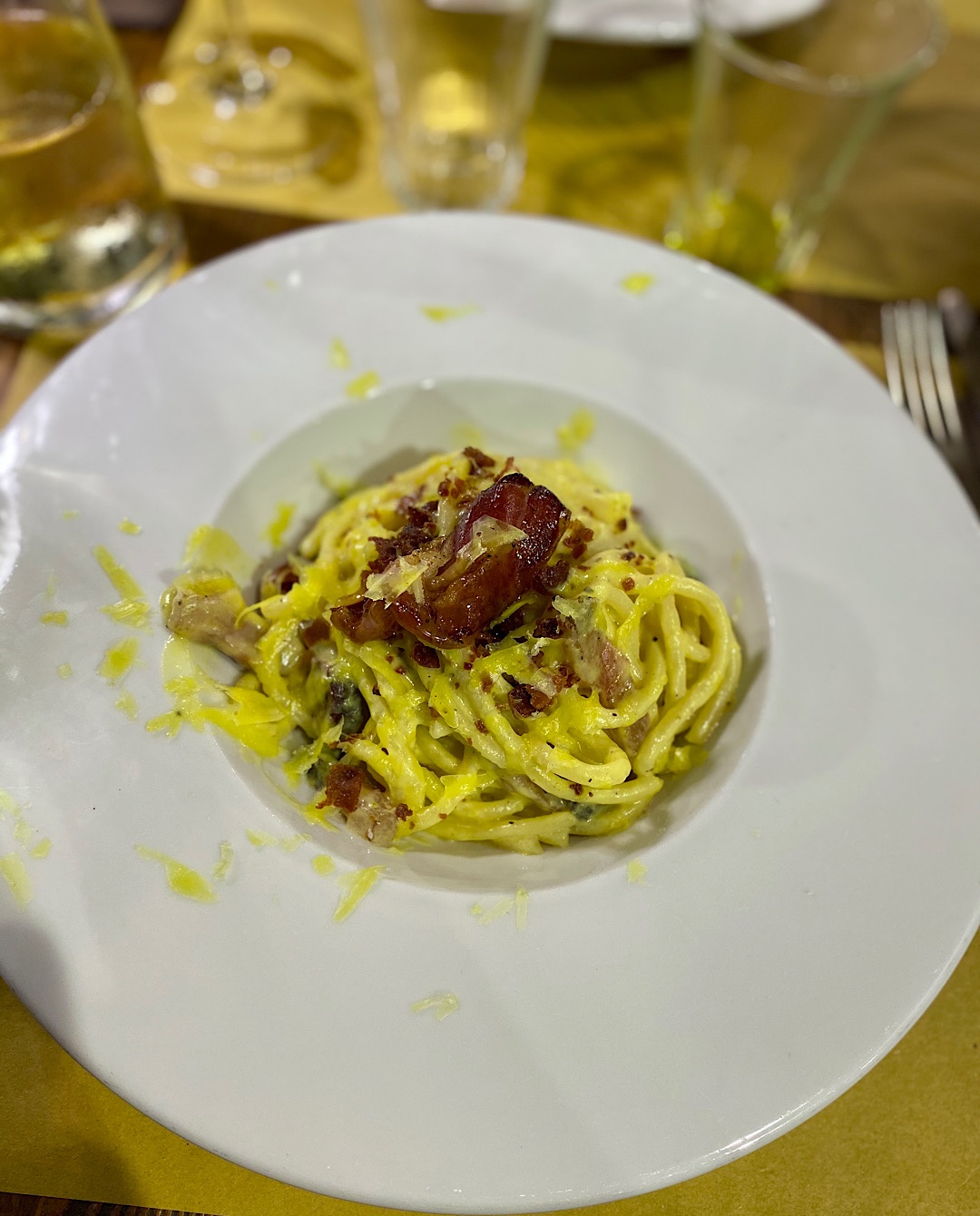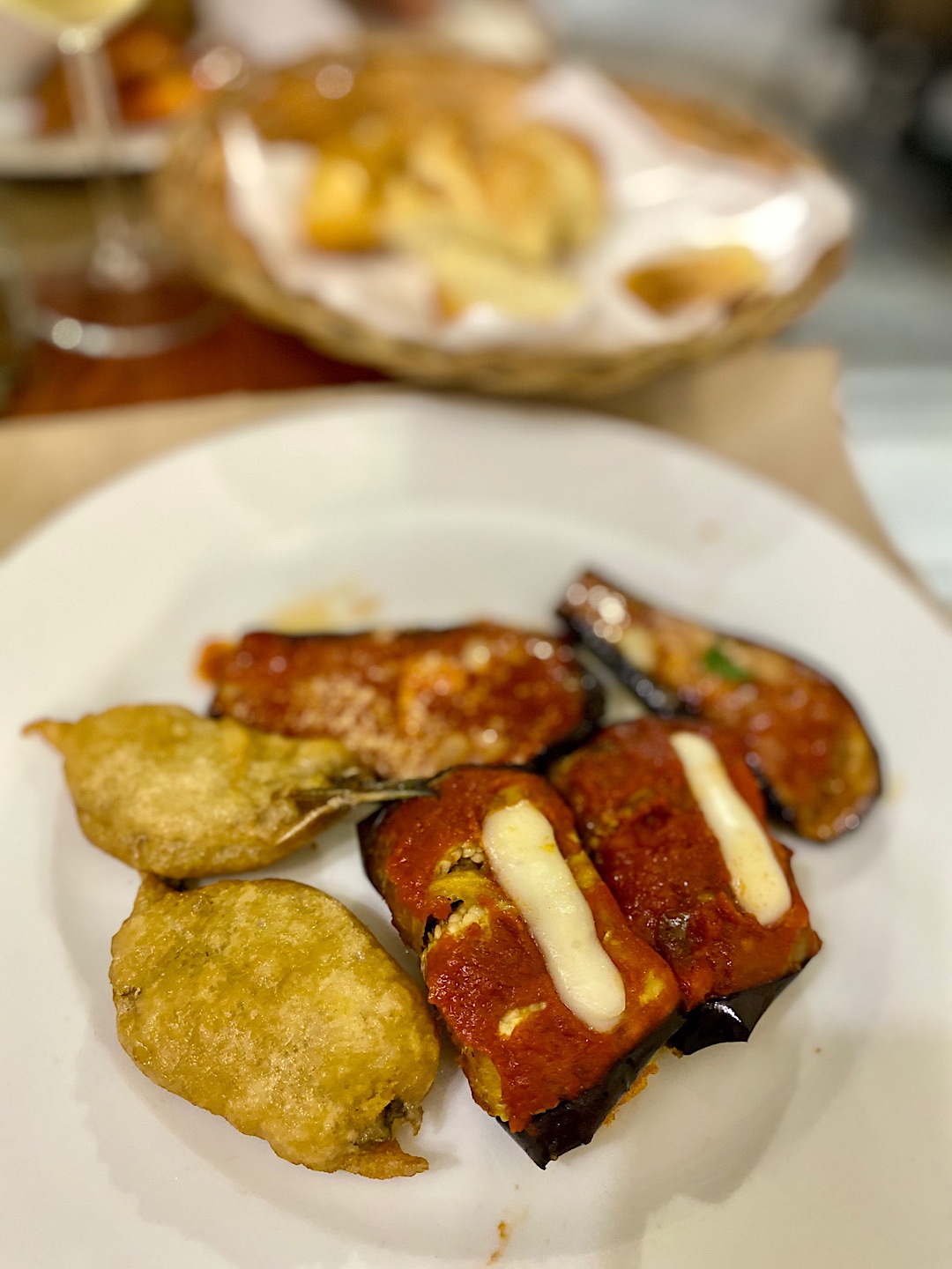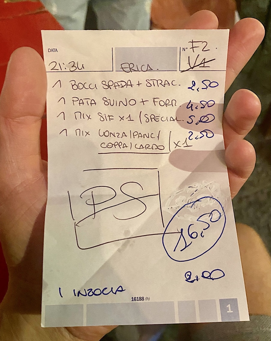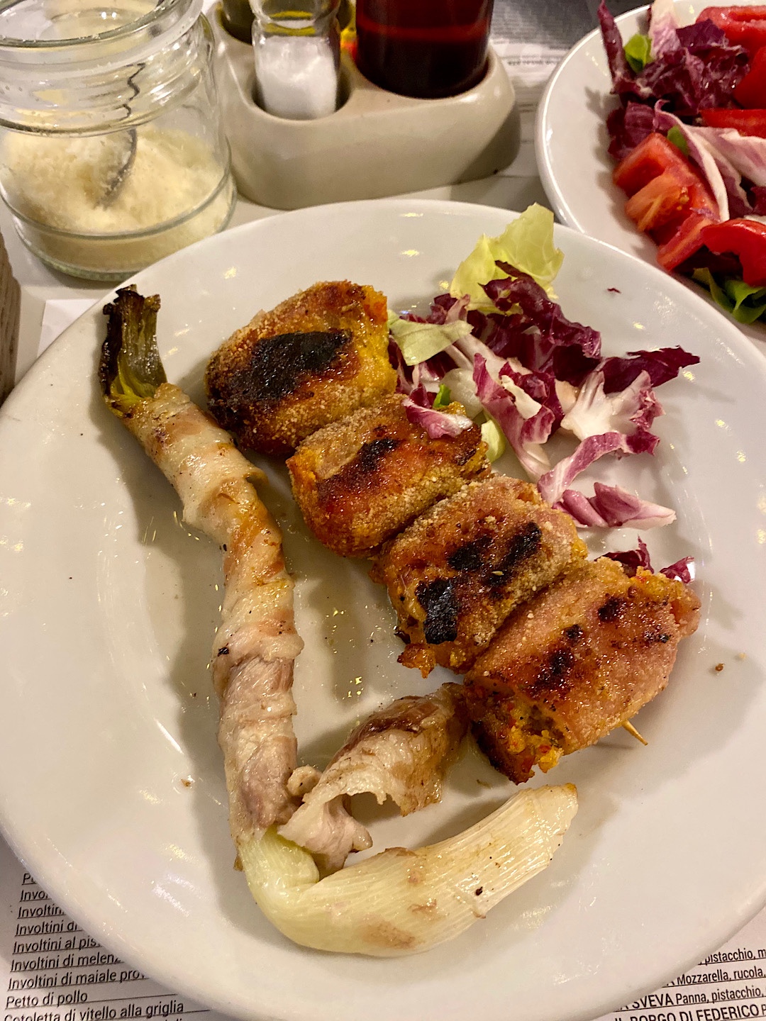 Kolejną odwiedzoną przez nas restauracją była Trattoria u Fucularu do której trafiliśmy późną nocą. Dostaliśmy stolik na ulicy, więc od czasu do czasu kolację umilały nam przejeżdżające tuż obok skutery 😉