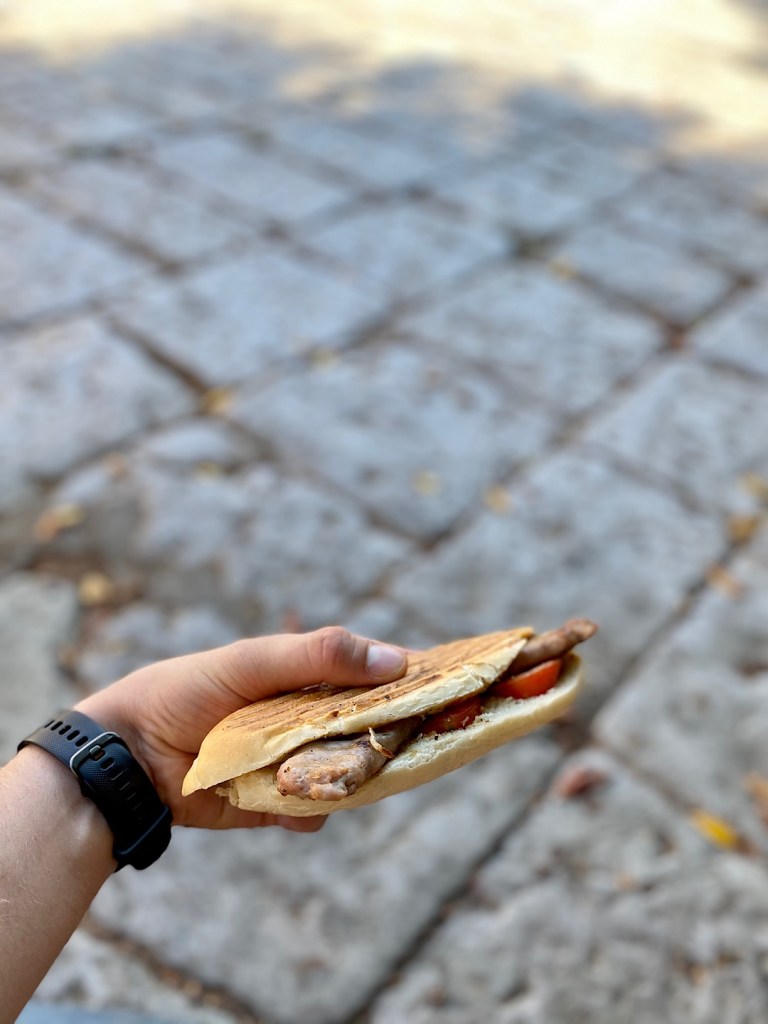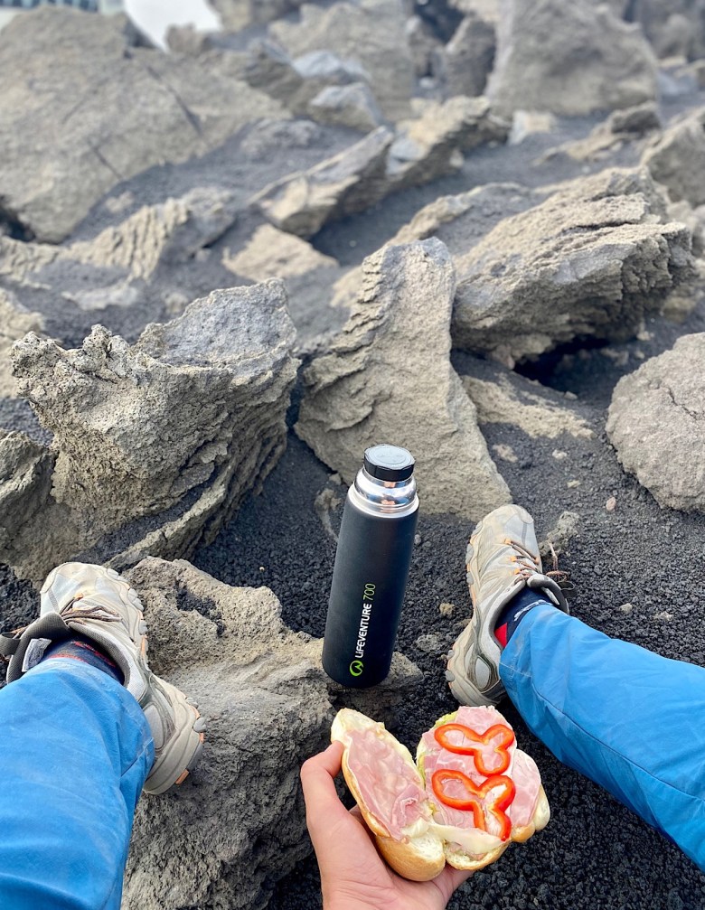 Polecam zabrać własny prowiant – jedzenie w jadłodajniach przy parkingu, nie dość że drogie to wygląda niezbyt apetycznie. No i nic nie smakuje tak wybornie jak bułka z lokalnej piekarni z szynką, serem i warzywami z miejscowego bazaru 🙂