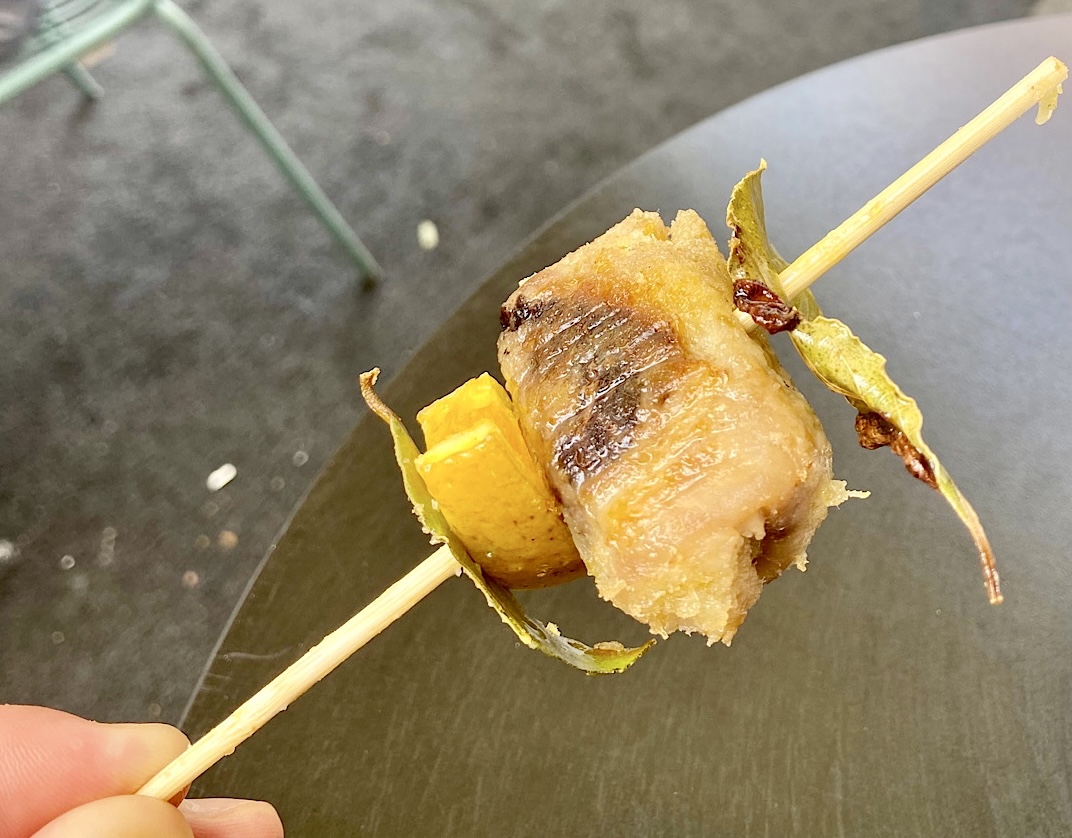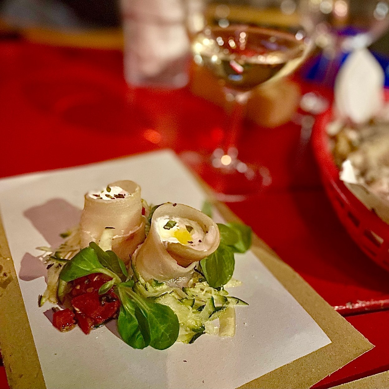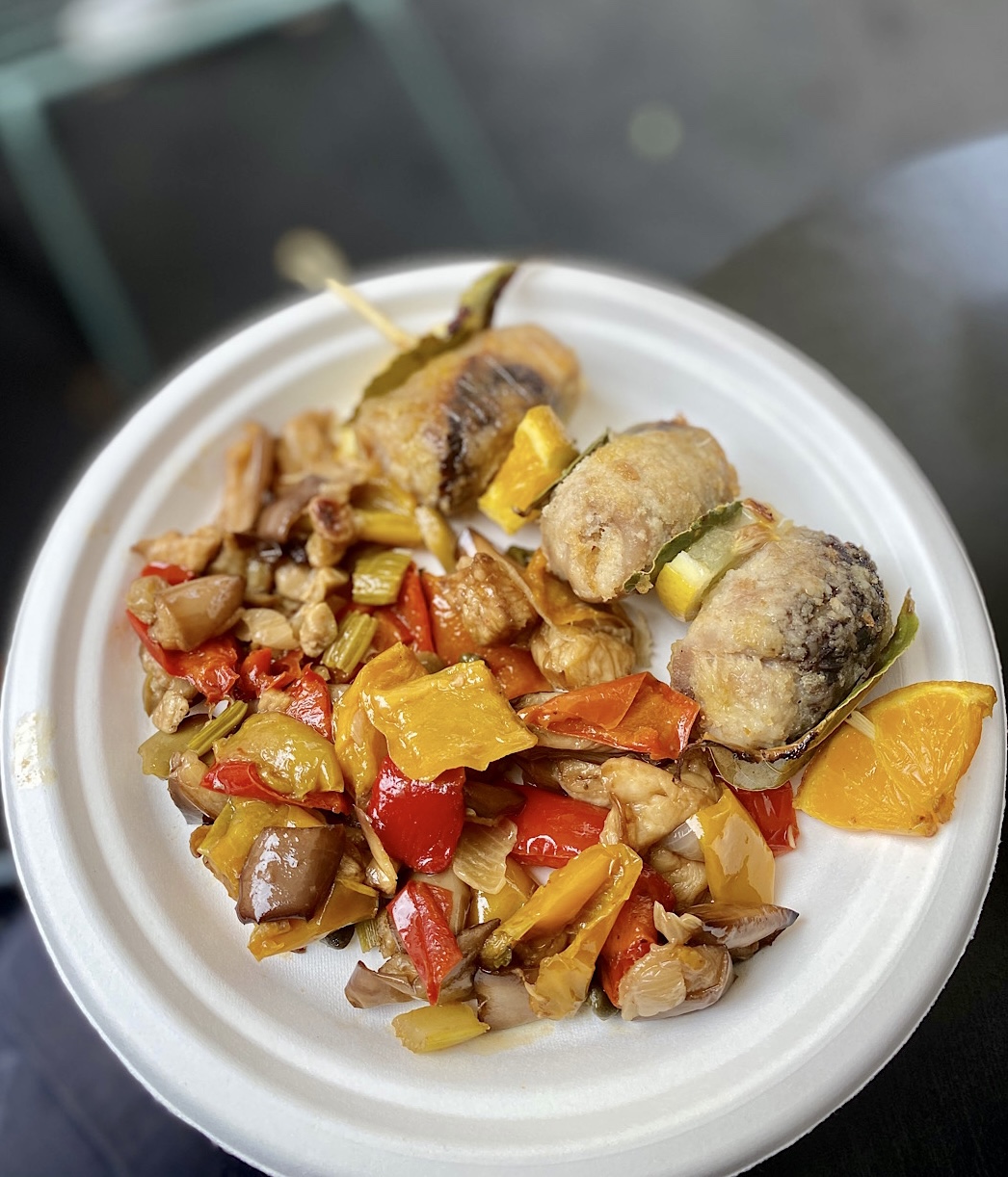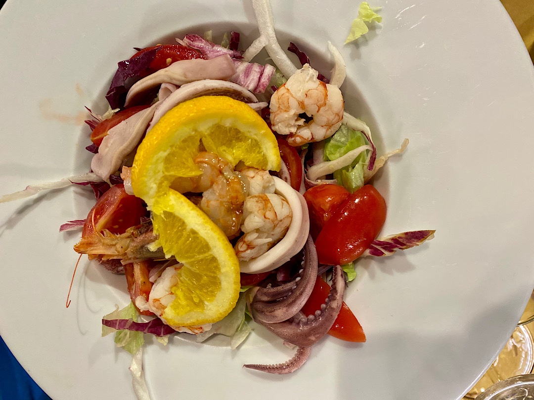 … instalatę którą składa się z wybranych przez gości warzyw i sałat (2 Euro), cipollatę (1 Euro) oraz involtino z miecznika (4 Euro).
