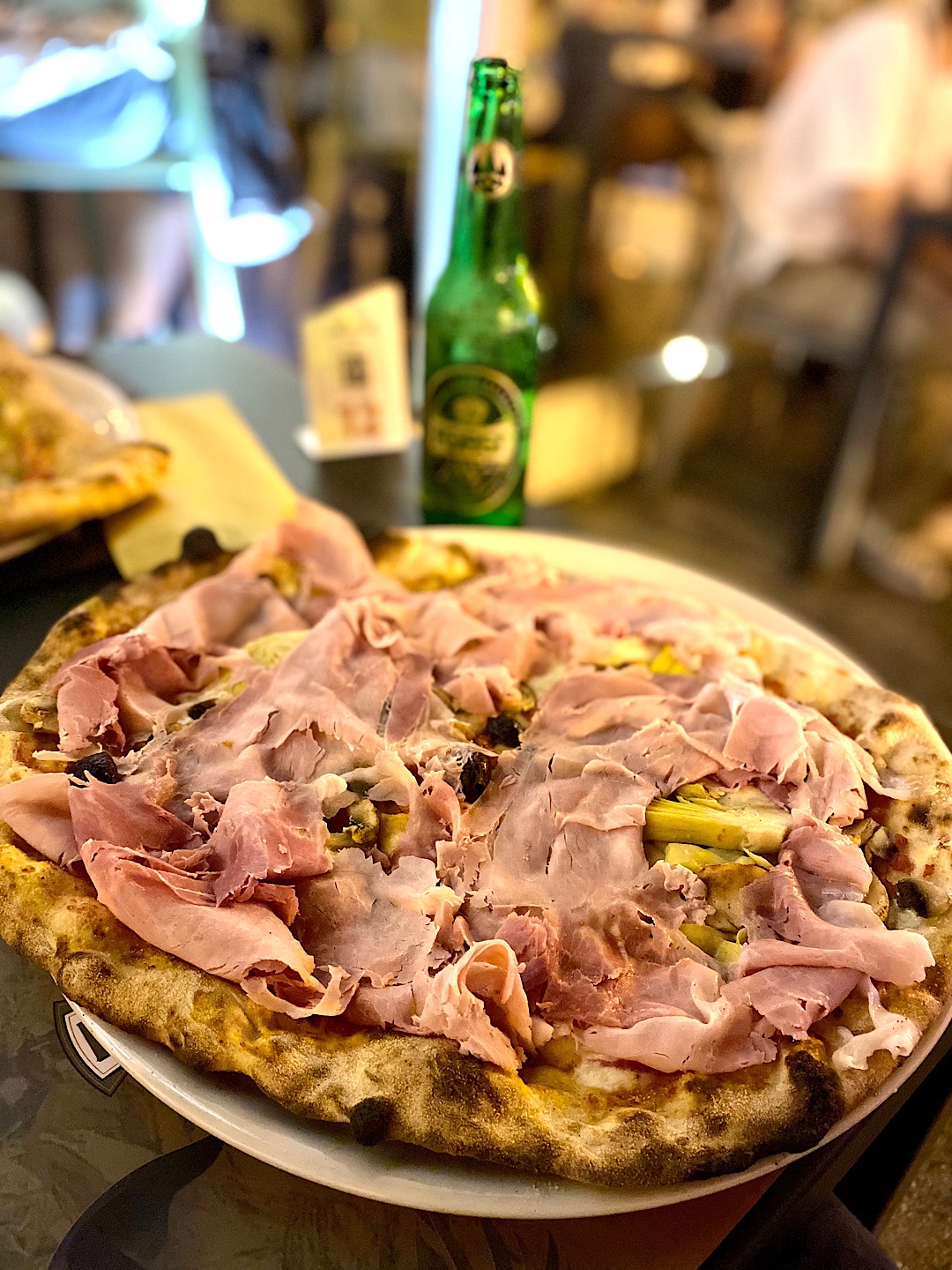 Gatunków pizzy jest oczywiście multum, a skład ogranicza jedynie wyobraźnia pizzaiolo. My dwukrotnie trafiliśmy na hybrydy pomiędzy pizzą rzymską, a napoletaną.