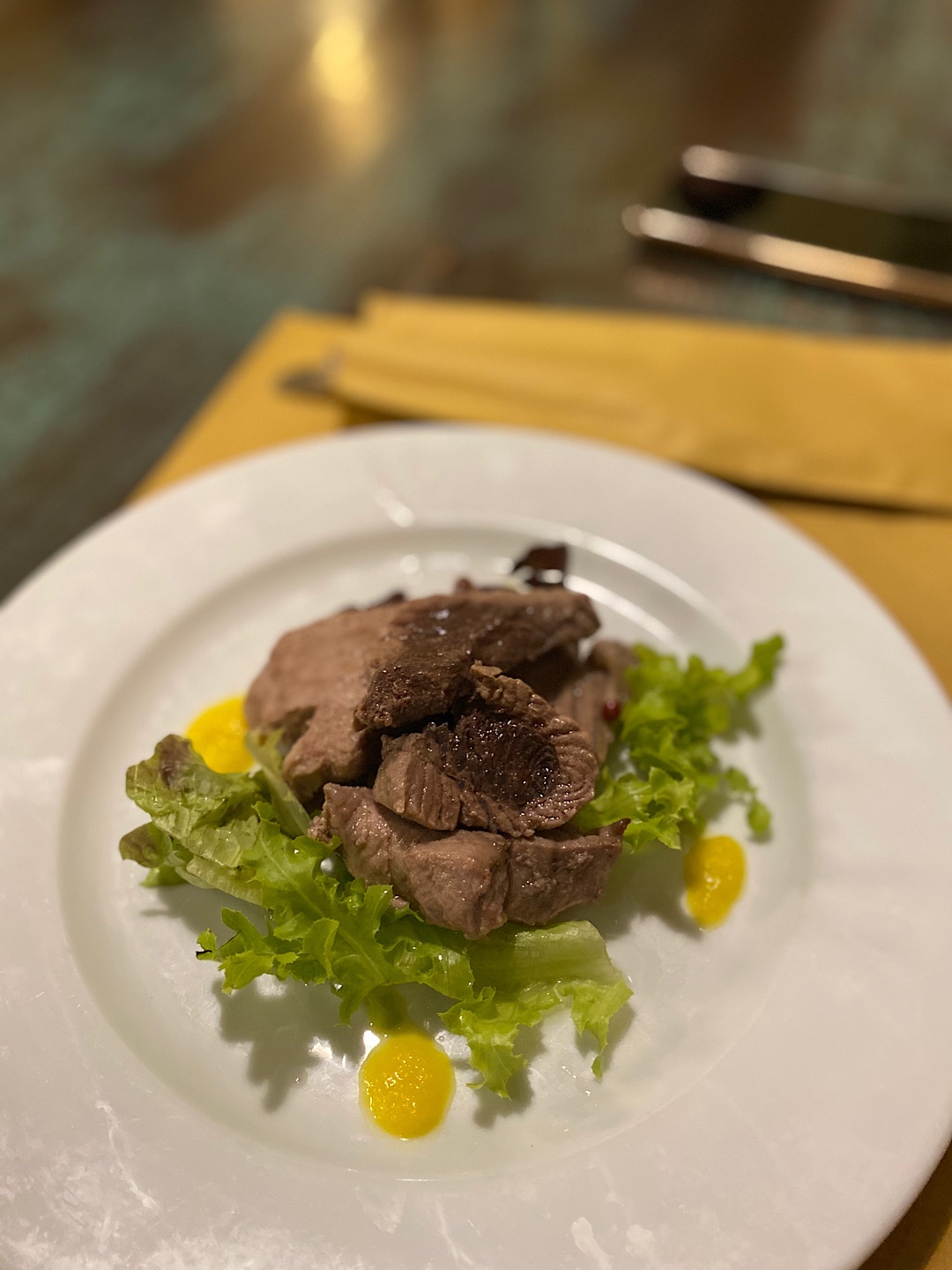 Tutaj postawiliśmy na stek z cielęciny (7 Euro) oraz z miecznika (14 Euro) w towarzystwie sałat (każda w rejonach 3 Euro).